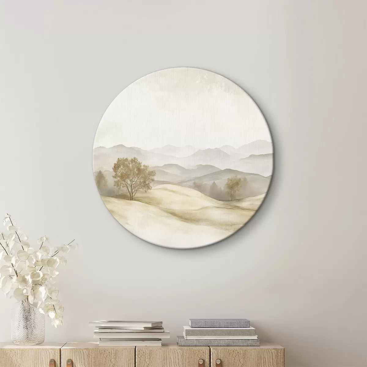 Obrázok Prírodná krajina v béžovej farebnej palete, lúka, stromy, kresba akvarelom Nr r40231