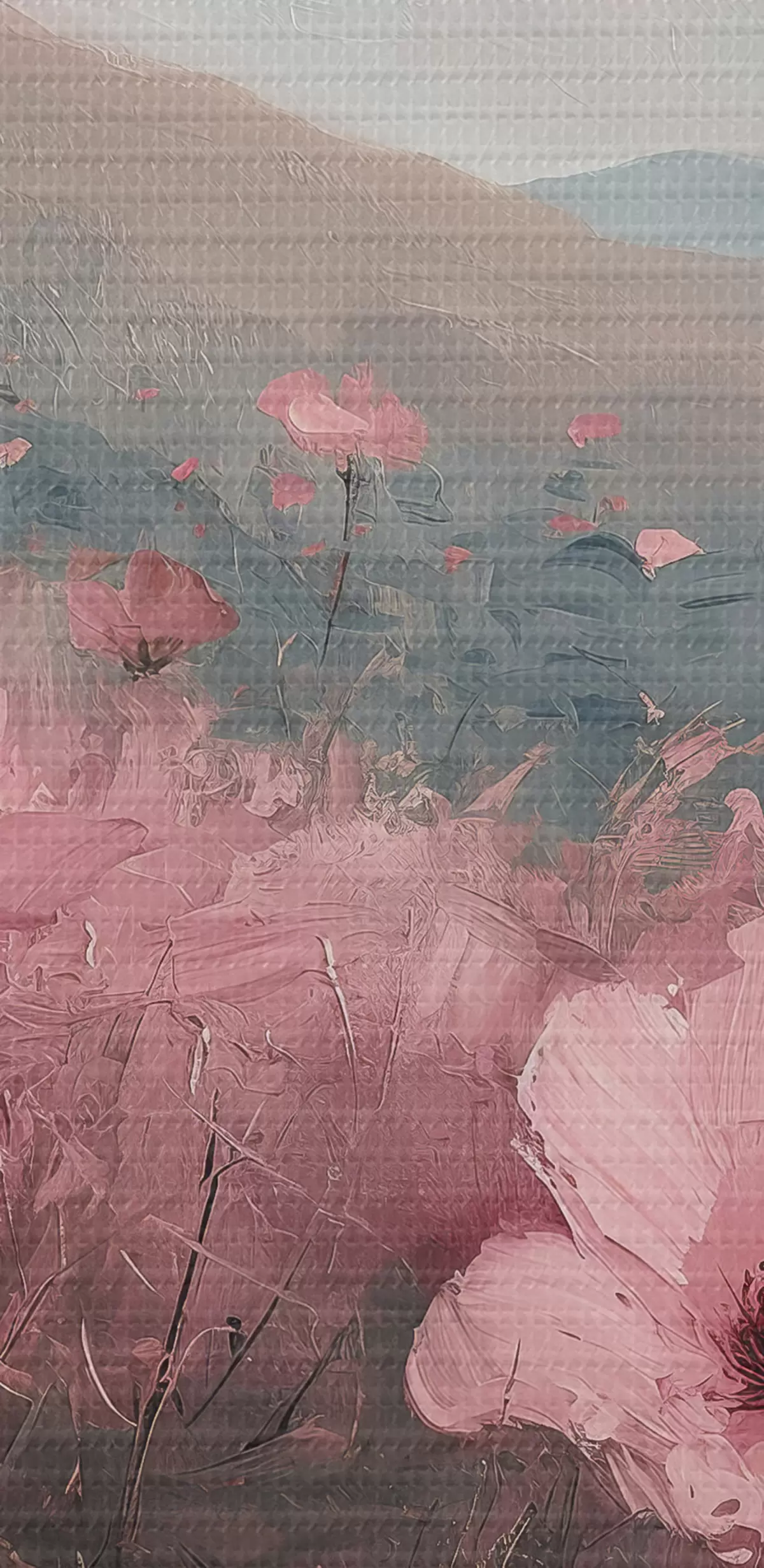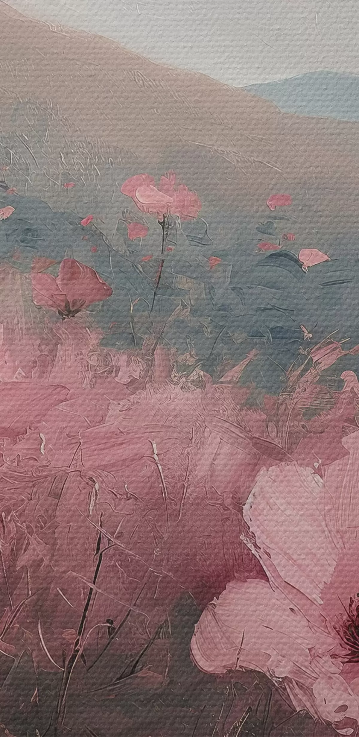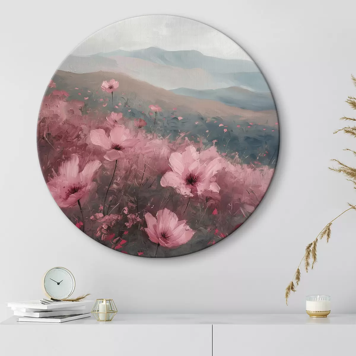 Obrázok Ružové kvety na lúke, prírodná krajina, hory, olejomaľba, živé ťahy štetcom Nr r40233