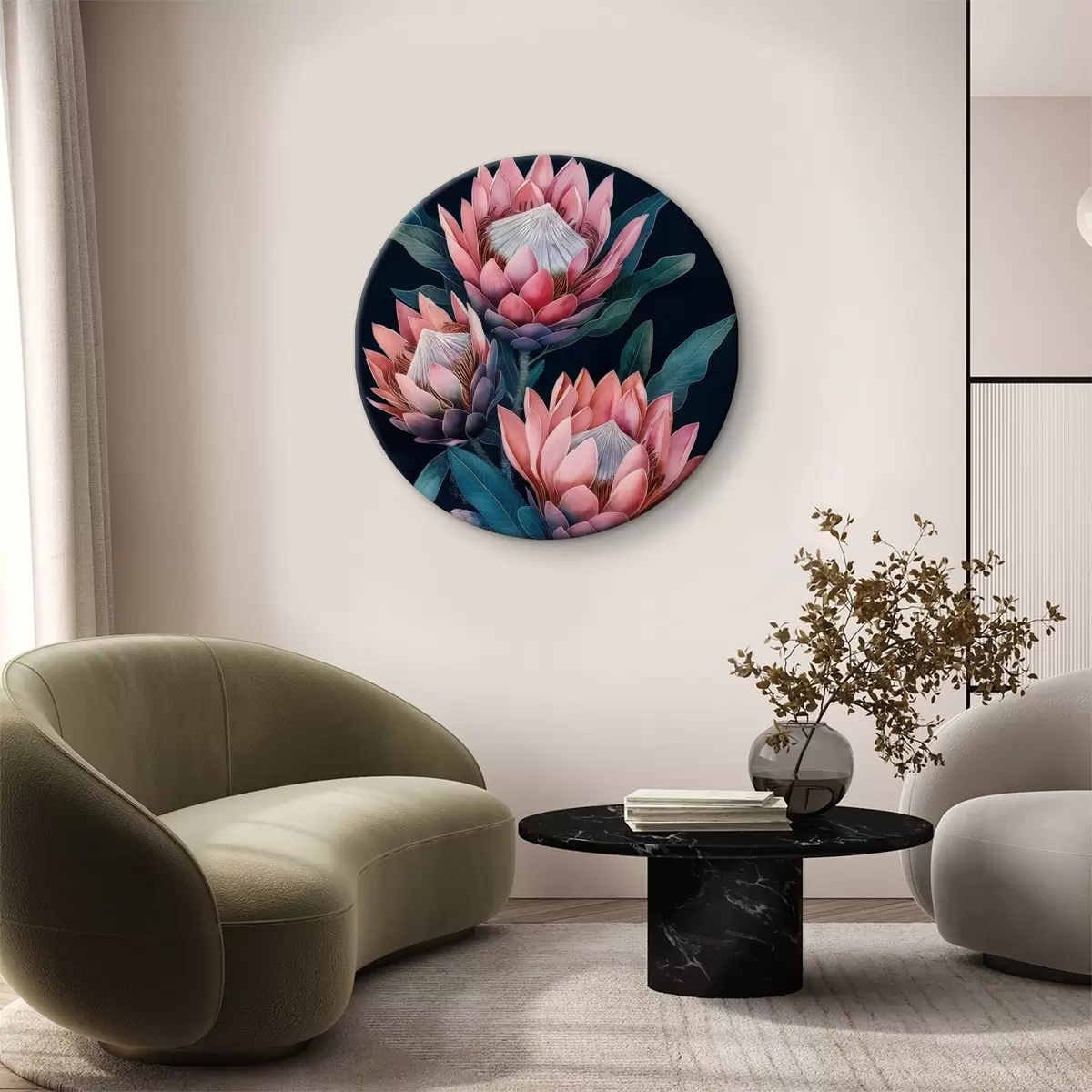 Obrázok kytica protea na tmavom pozadí Nr r40257