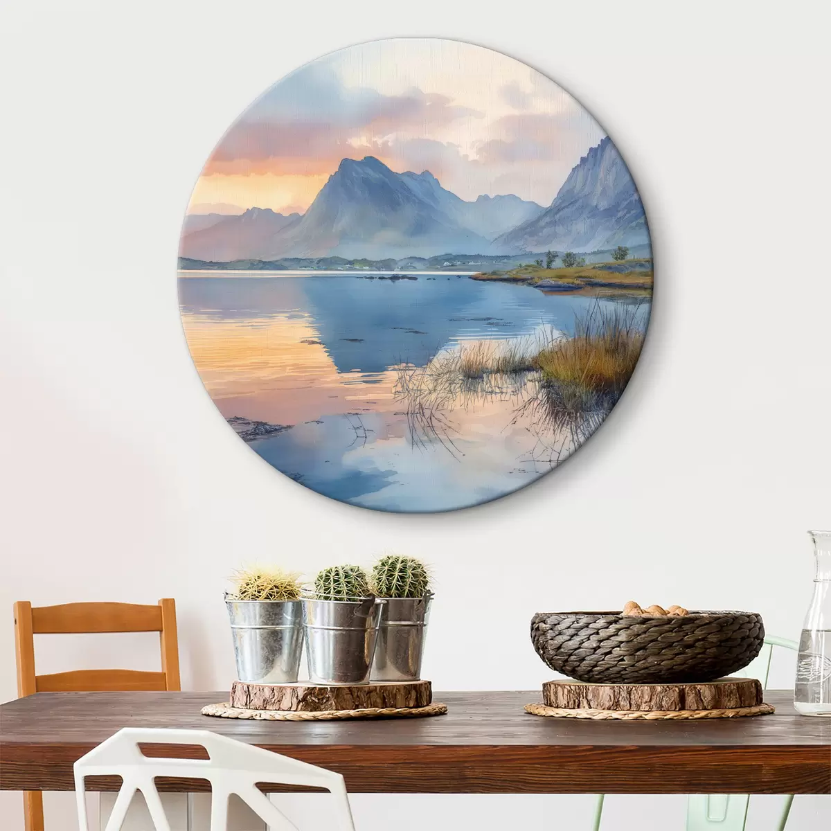 Obrázok Pokojná rieka s horami, východ slnka, jemné farby Nr r40307