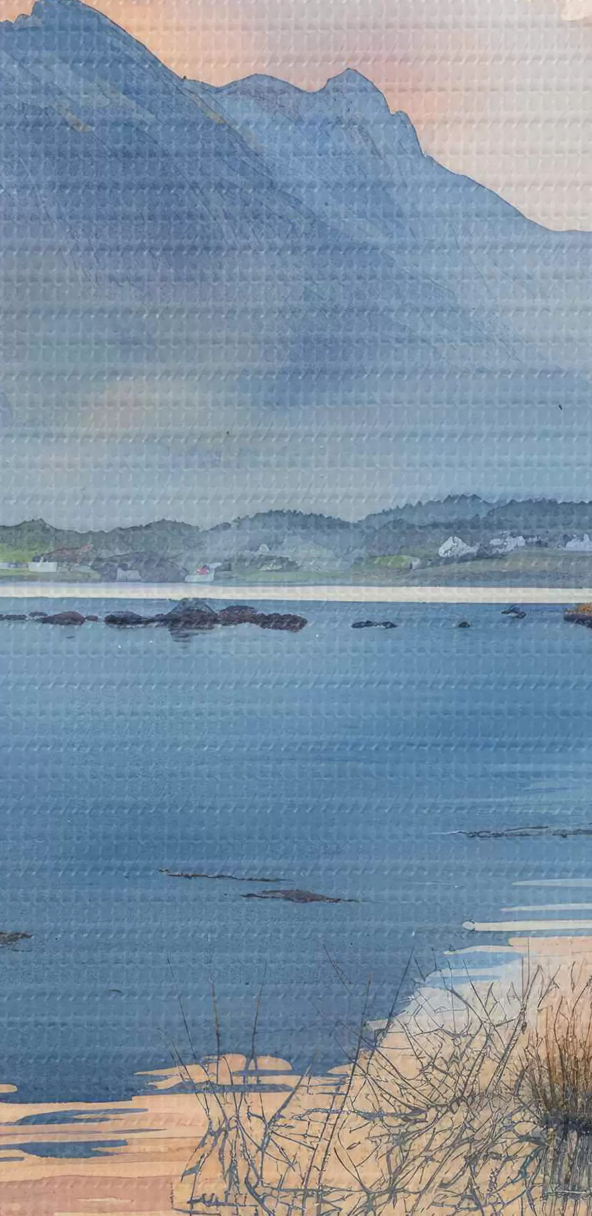 Obrázok Pokojná rieka s horami, východ slnka, jemné farby Nr r40307