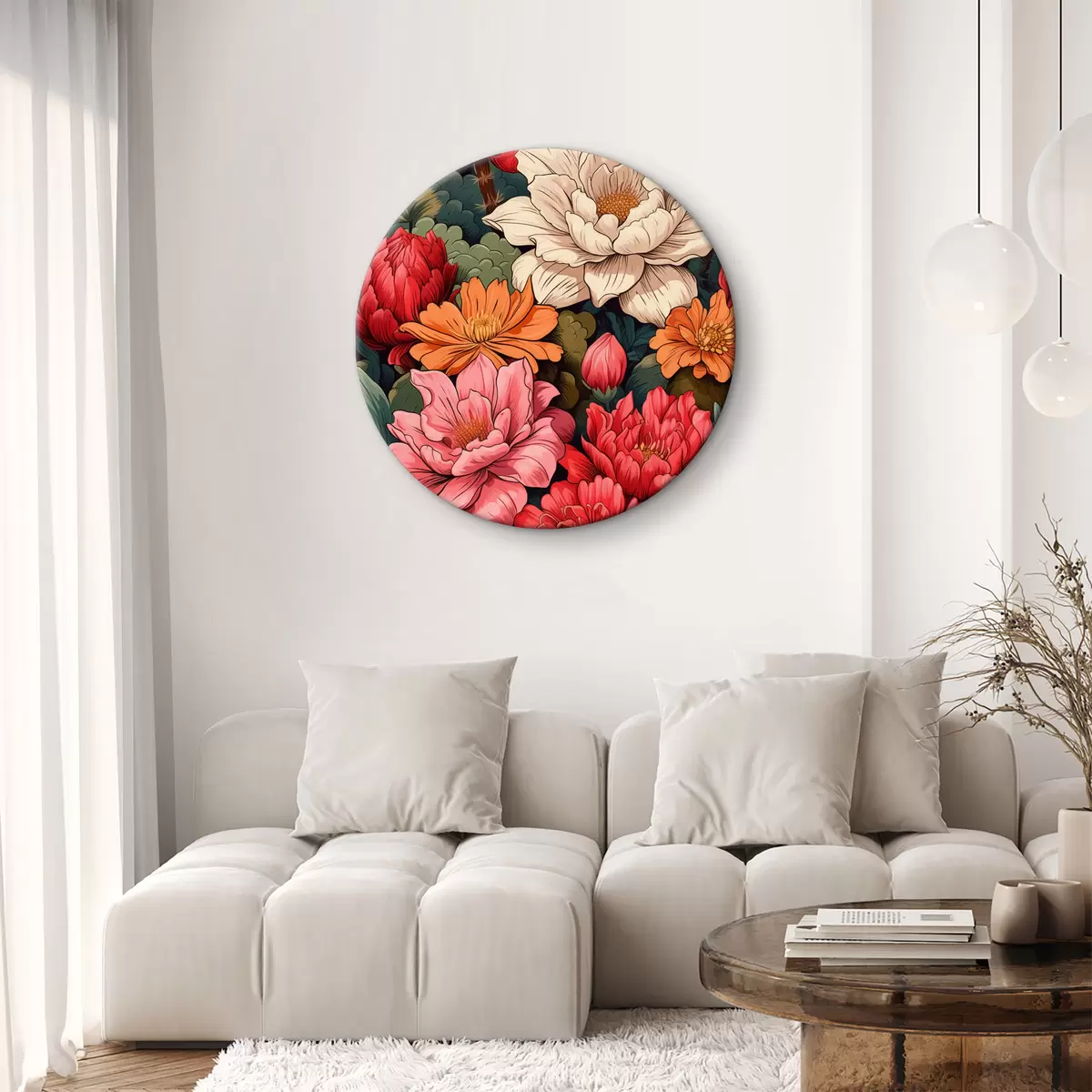 Obrázok Svetlé chryzantémy, biela, zelená, oranžová, červená Nr r40315