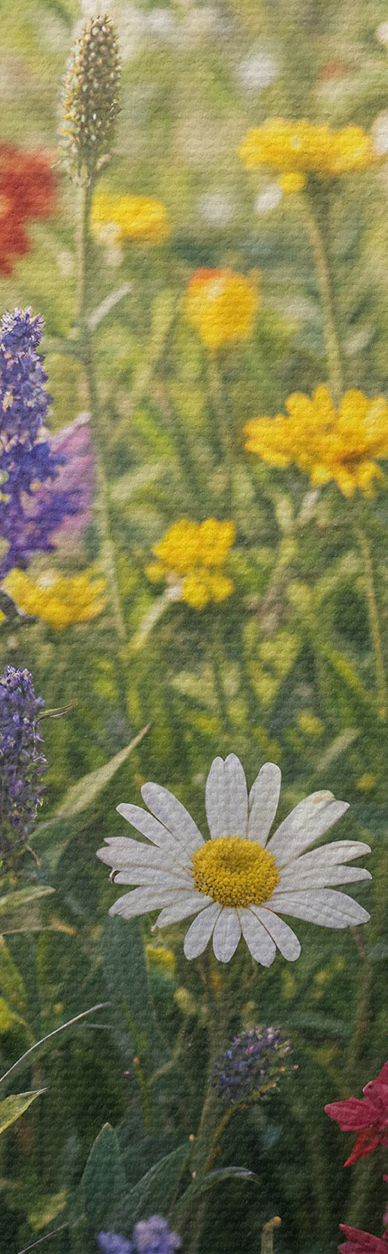 Obrázok Farebná poľná lúka s rôznymi kvitnúcimi kvetmi vrátane sedmokrások, levandule a červených kvetov Nr r40390