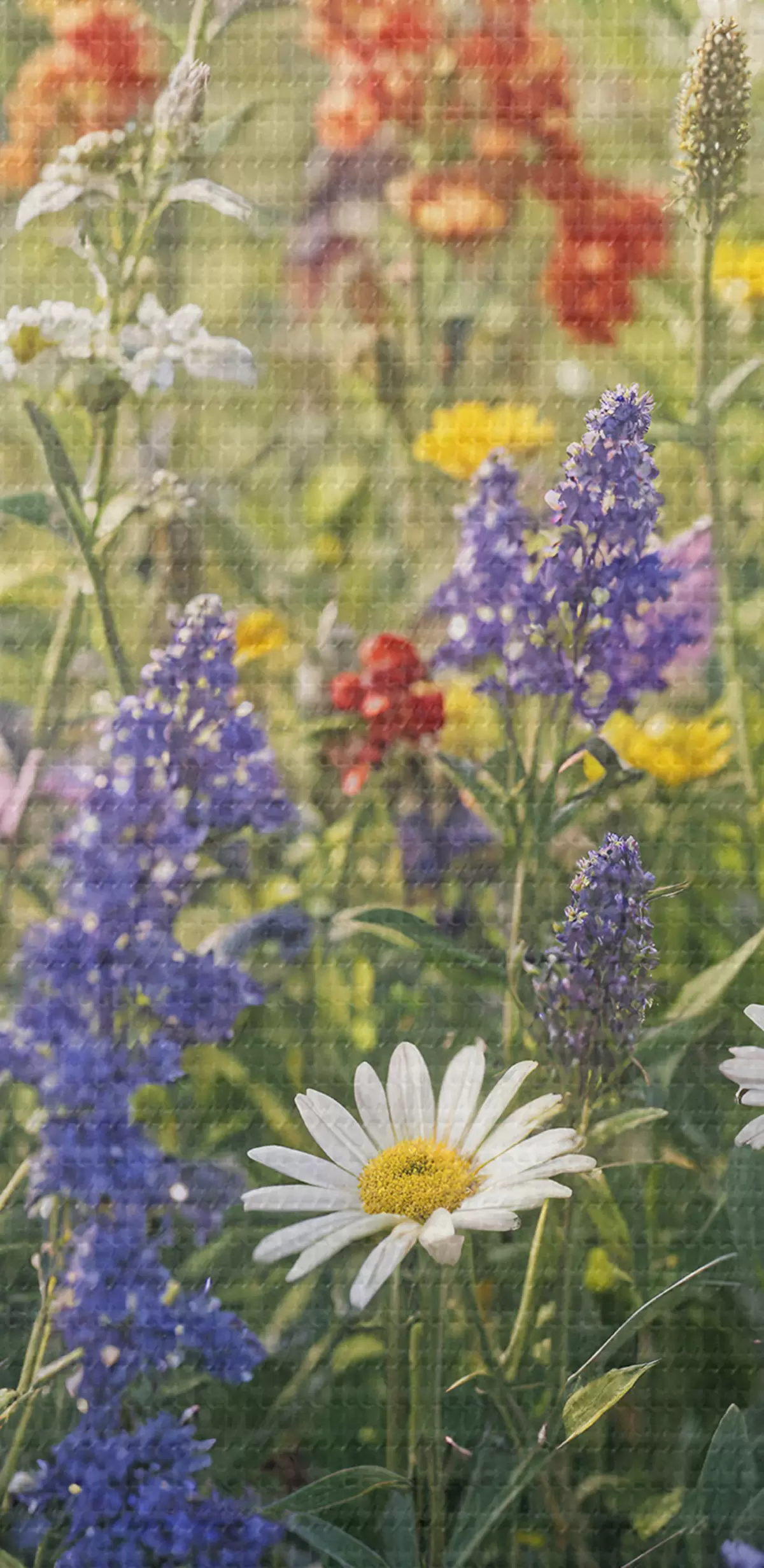 Obrázok Farebná poľná lúka s rôznymi kvitnúcimi kvetmi vrátane sedmokrások, levandule a červených kvetov Nr r40390