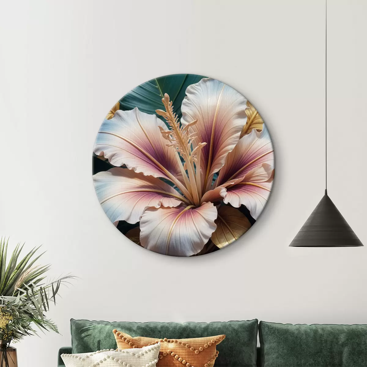 Obrázok Živý, viacfarebný kvet tropického ibišteka s veľkými, zložitými okvetnými lístkami v odtieňoch ružovej, bielej a žltej Nr r40399