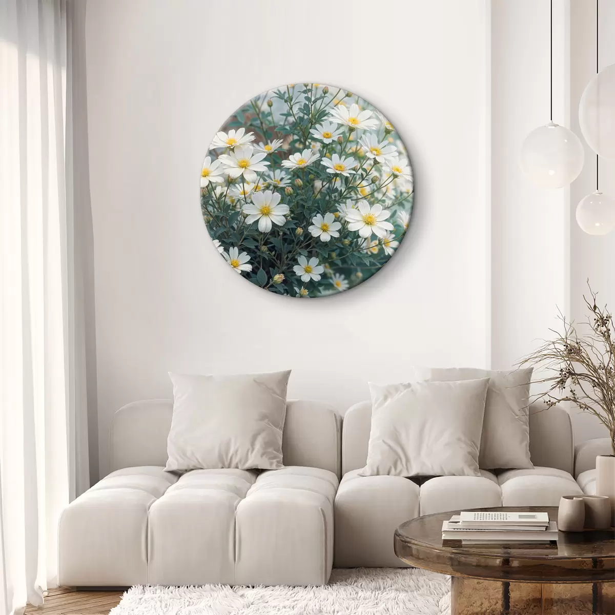 Obrázok Pole bielych kvetov sedmokrásky so zelenými listami na rozmazanom pozadí Nr r40413