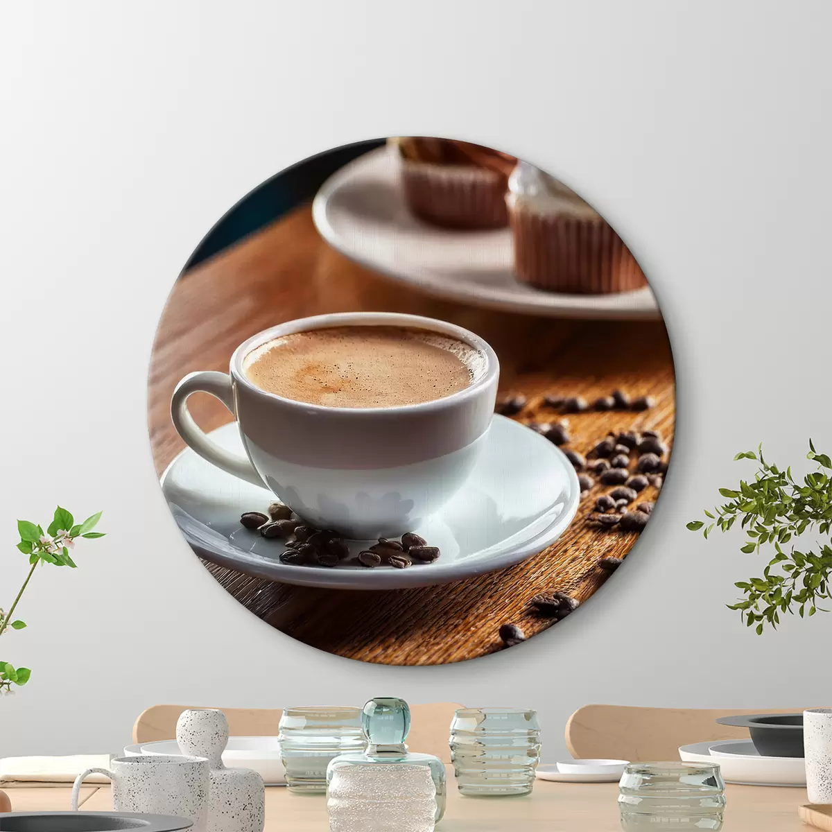 Obrázok šálka kávy, kávové zrná, koláče, zátišie Nr r40417