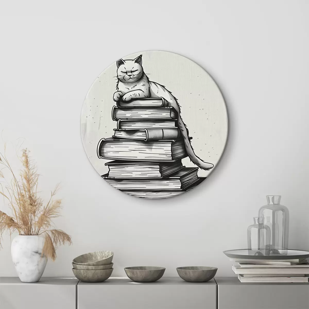 Obrázok Čiernobiela mačka na hromade kníh Nr r40435