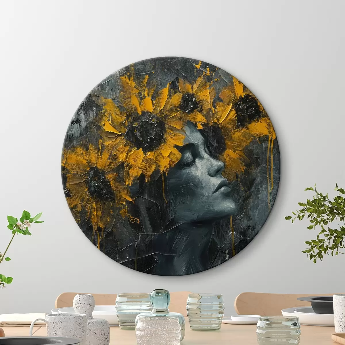 Obrázok Tvár ženy v odtieňoch sivej so slnečnicami Nr r40500