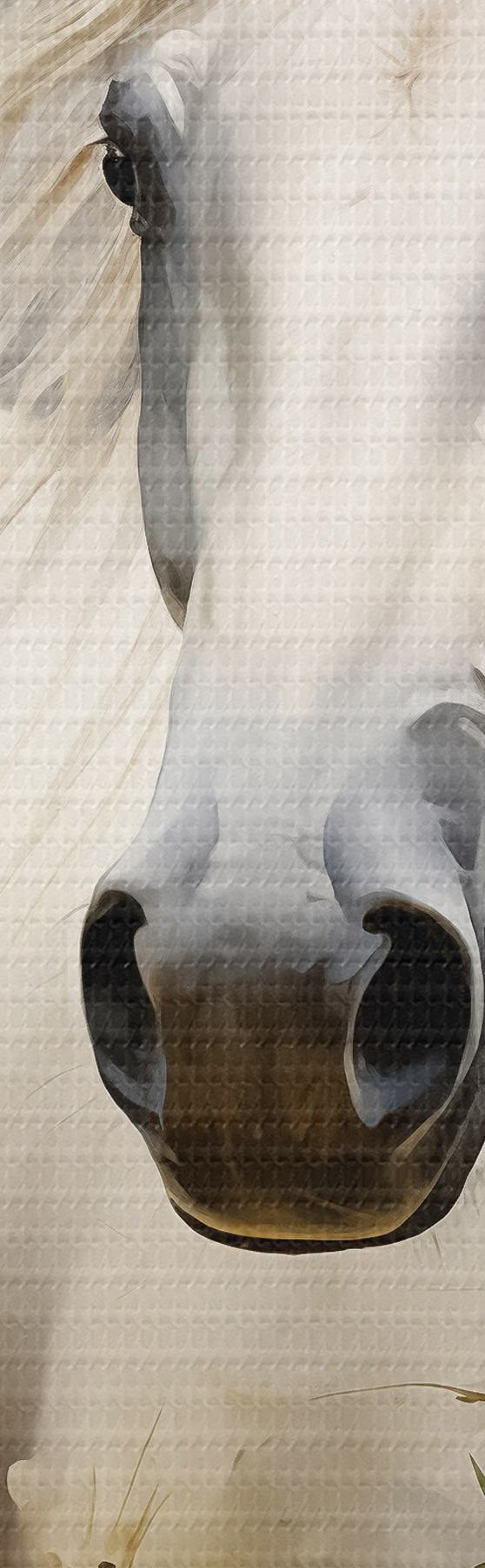 Obrázok Biely kôň v tráve medzi sedmokráskami Nr r40533
