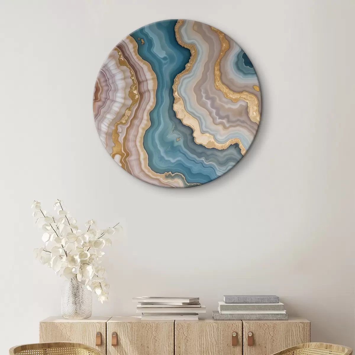 Obrázok Farebný abstraktný achátový kameň s vírivými vzormi a vrstvami tyrkysovej, béžovej, ružovej a žltej Nr r40540