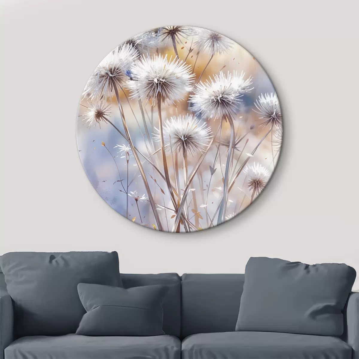 Obrázok Nadýchané biele kvety púpavy na rozmazanom akvarelovom pozadí s teplým osvetlením Nr r40541