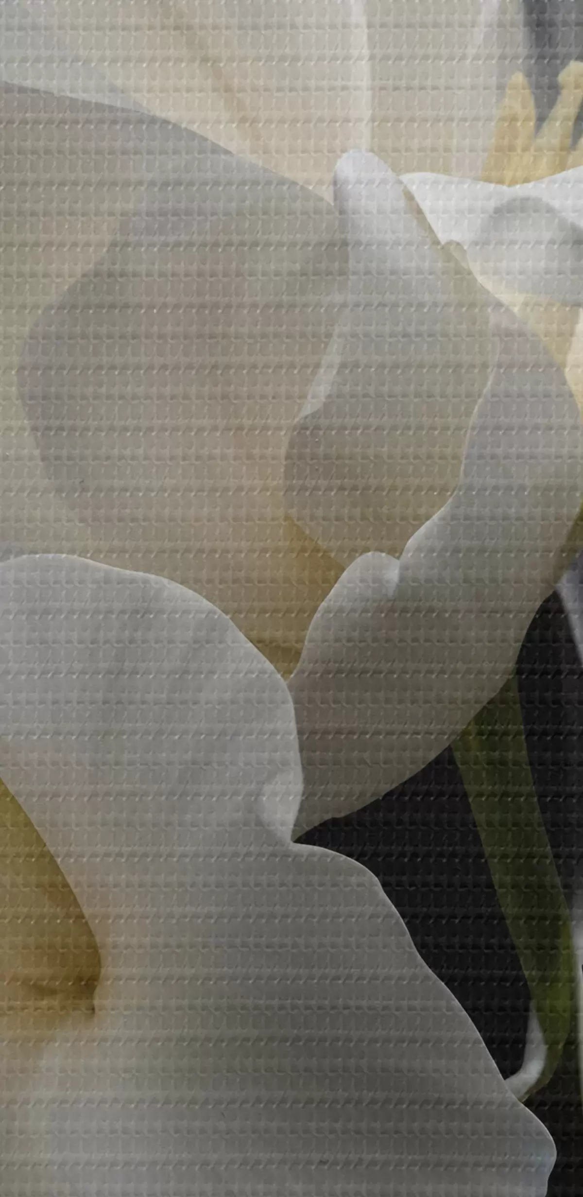 Obrázok Detailný záber na dva biele kvety s jemnými okvetnými lístkami a žltými stredmi na tmavom pozadí Nr r40549