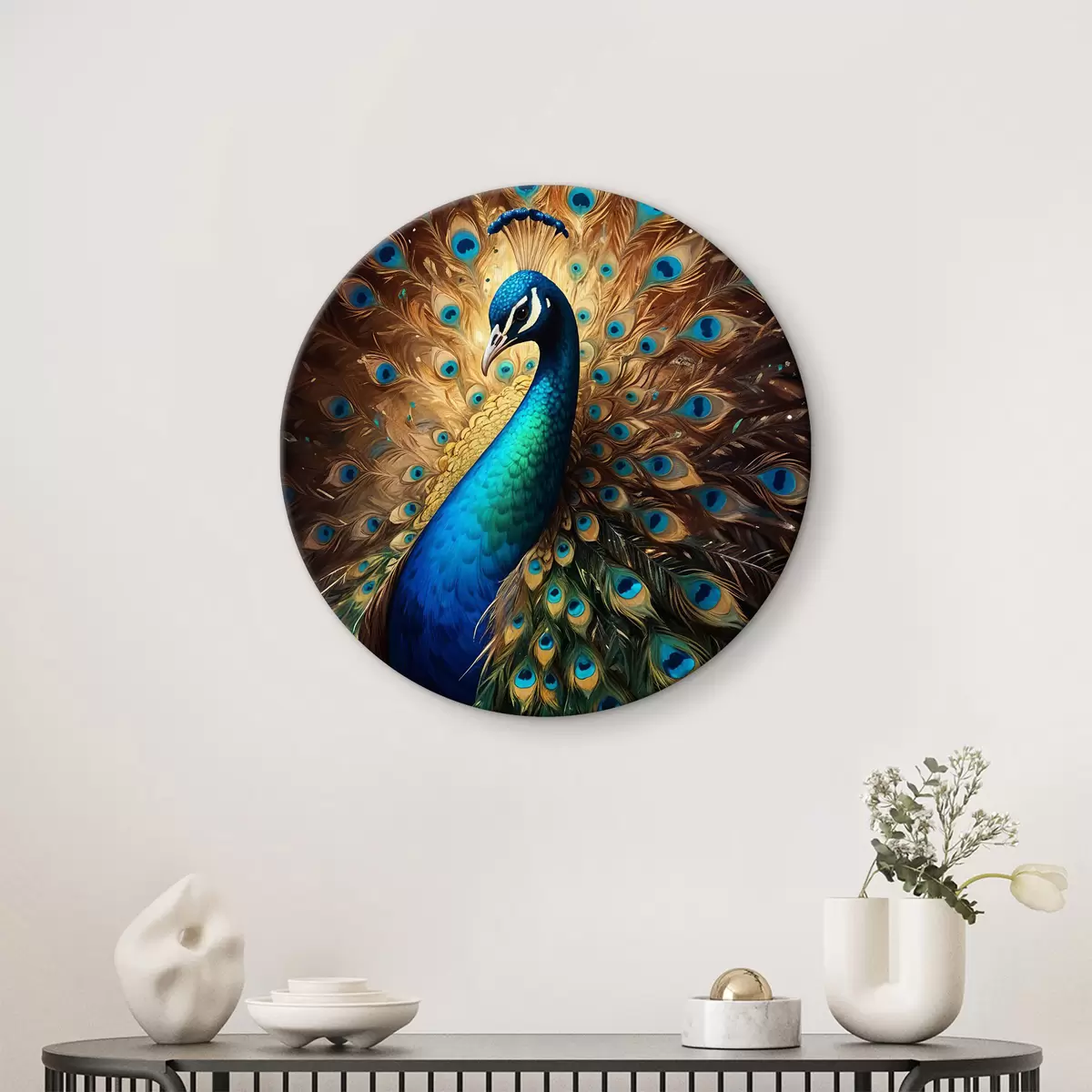 Obrázok Živý páv s úplne odhaleným perím, ktorý má úžasné modré a zelené perie Nr r40571