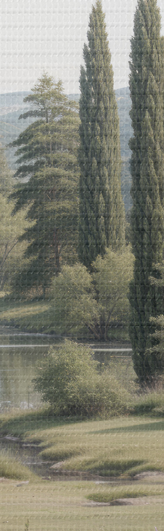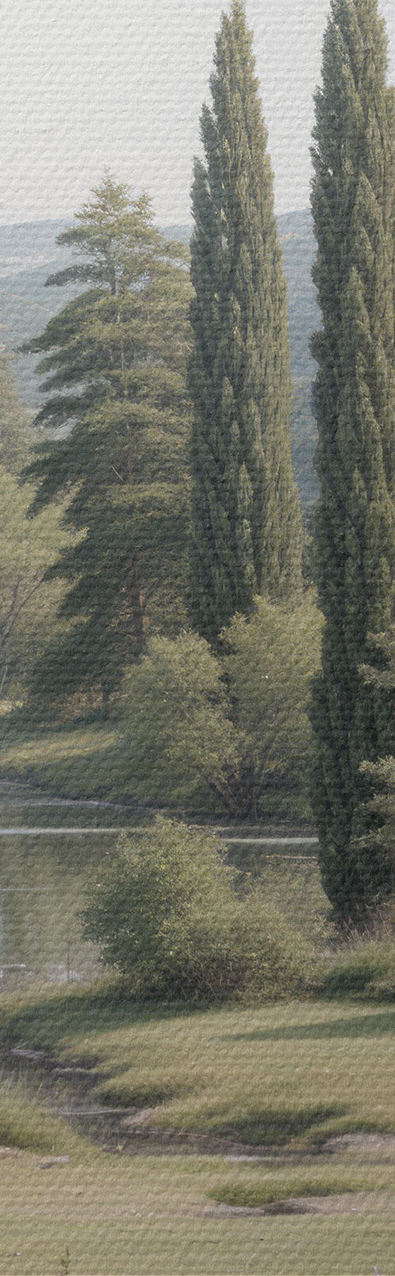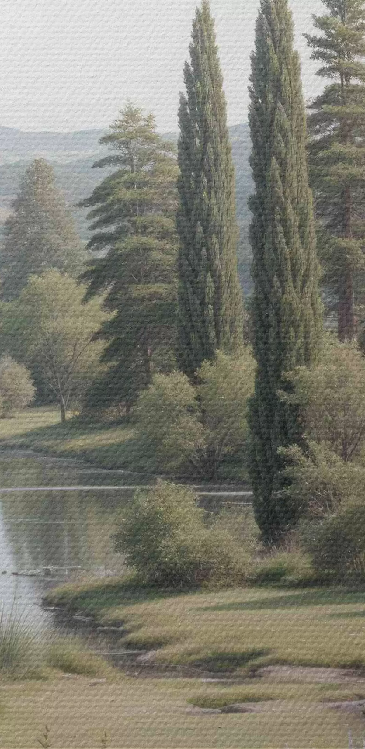 Obrázok Pokojná krajina s tichým jazerom obklopeným borovicami, cyprusmi a inou bujnou vegetáciou Nr r40579