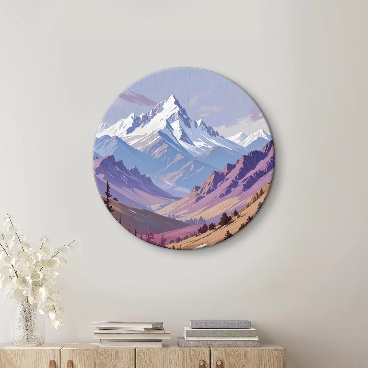Obrázok Zasnežené vrcholky hôr vo farebnej krajine s borovicami v popredí Nr r40595