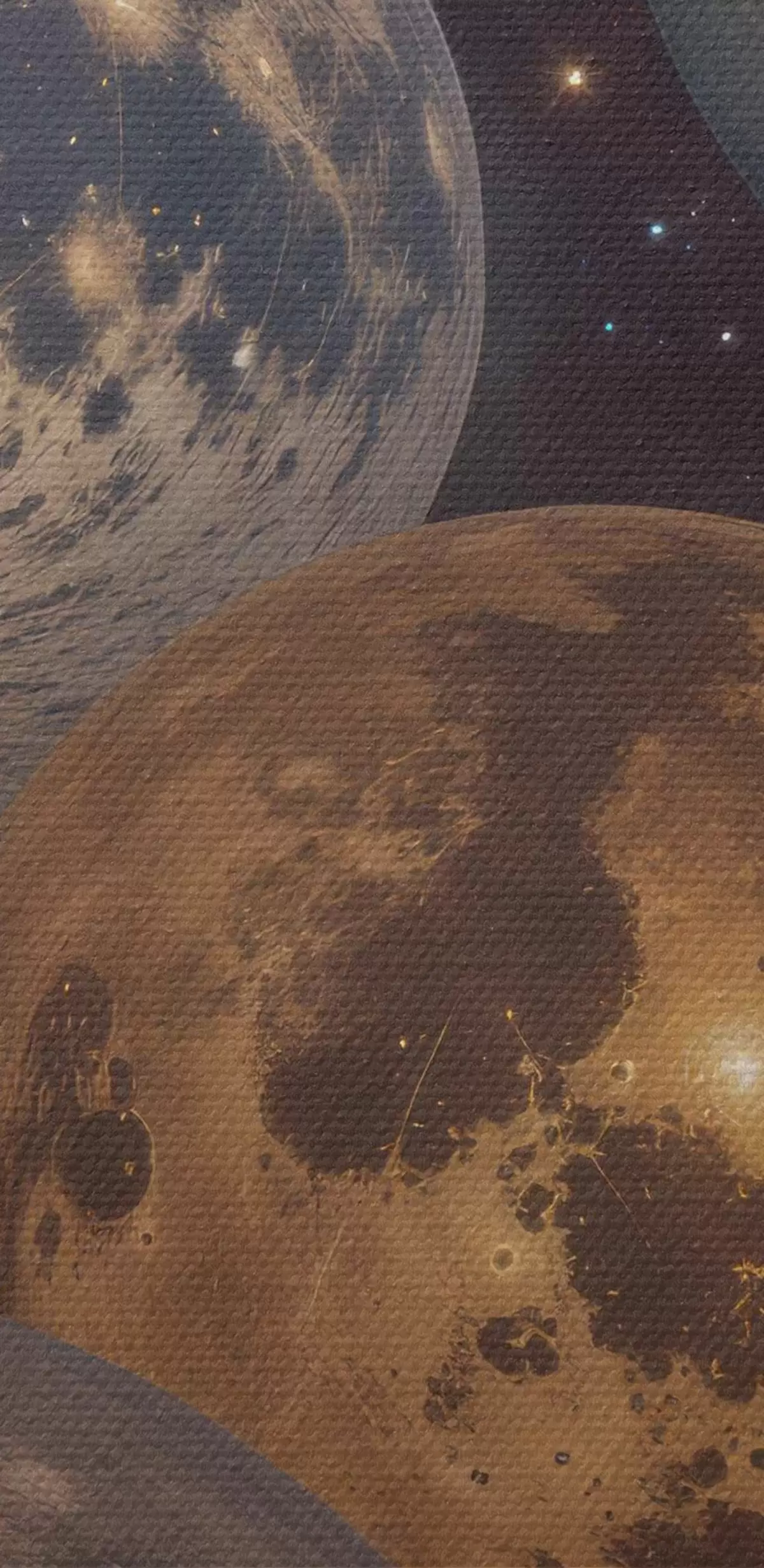 Obrázok Abstraktná vesmírna potlač s farebnými planétami a mesiacmi plávajúcimi na hviezdnej nočnej oblohe Nr r40607