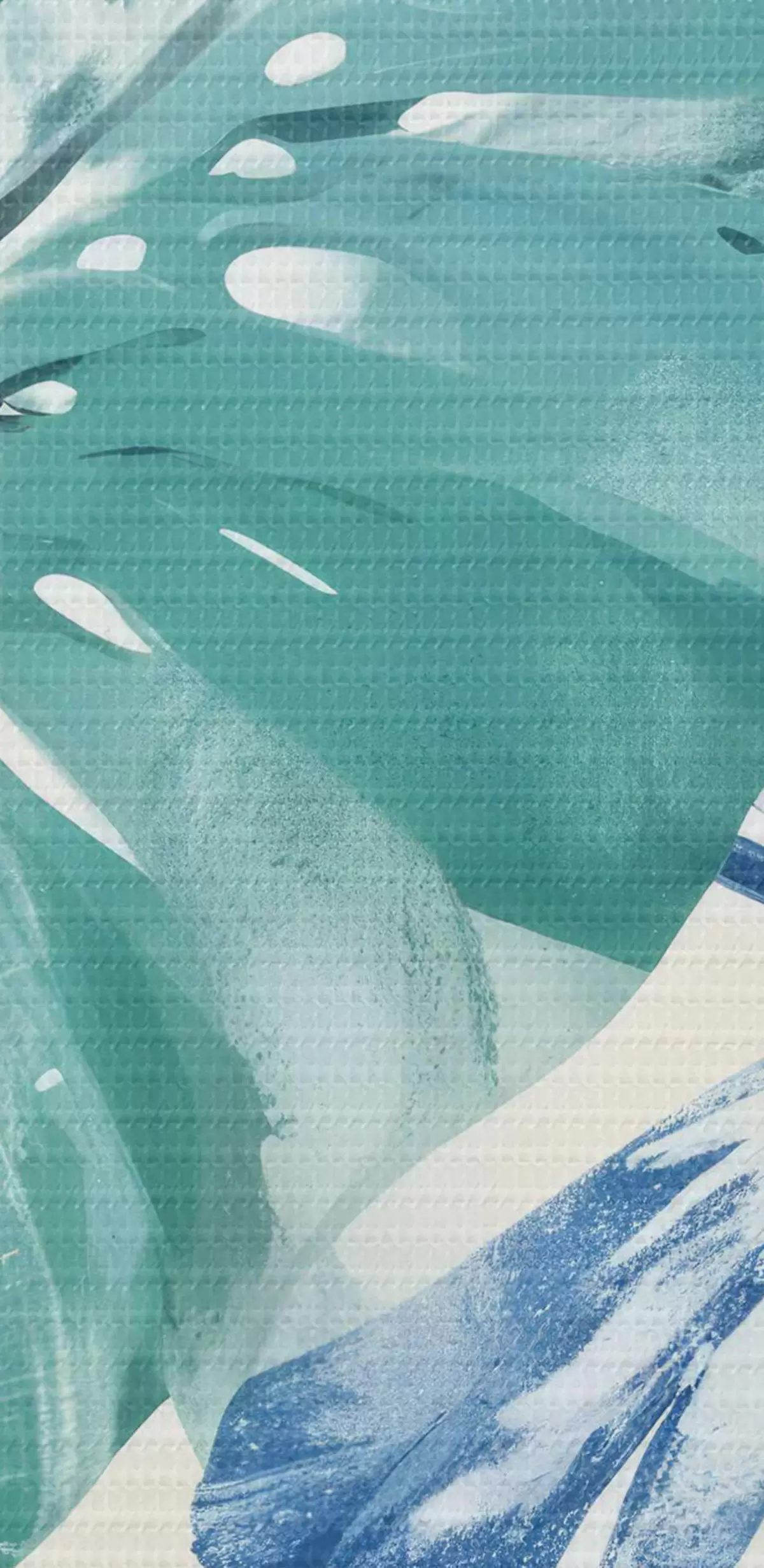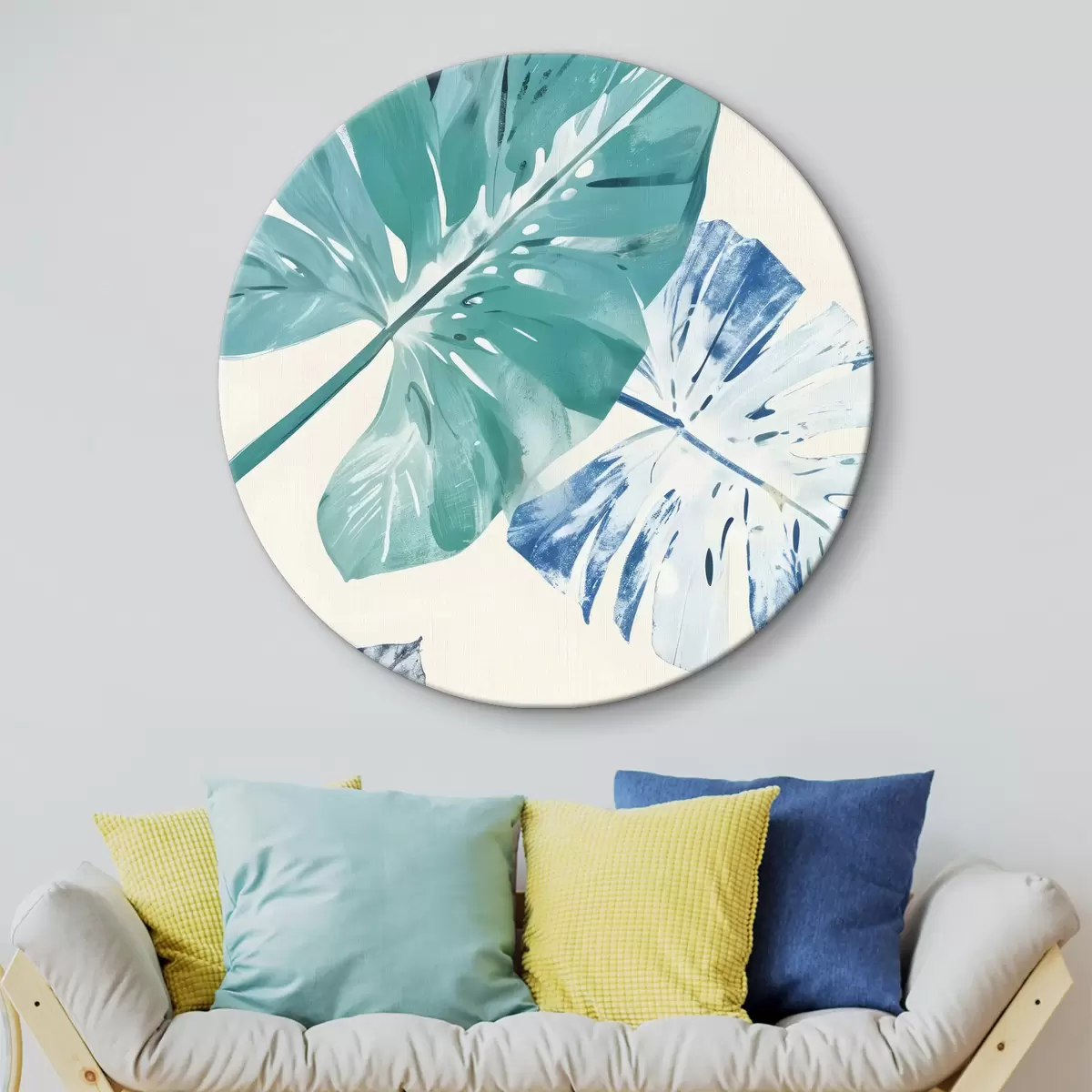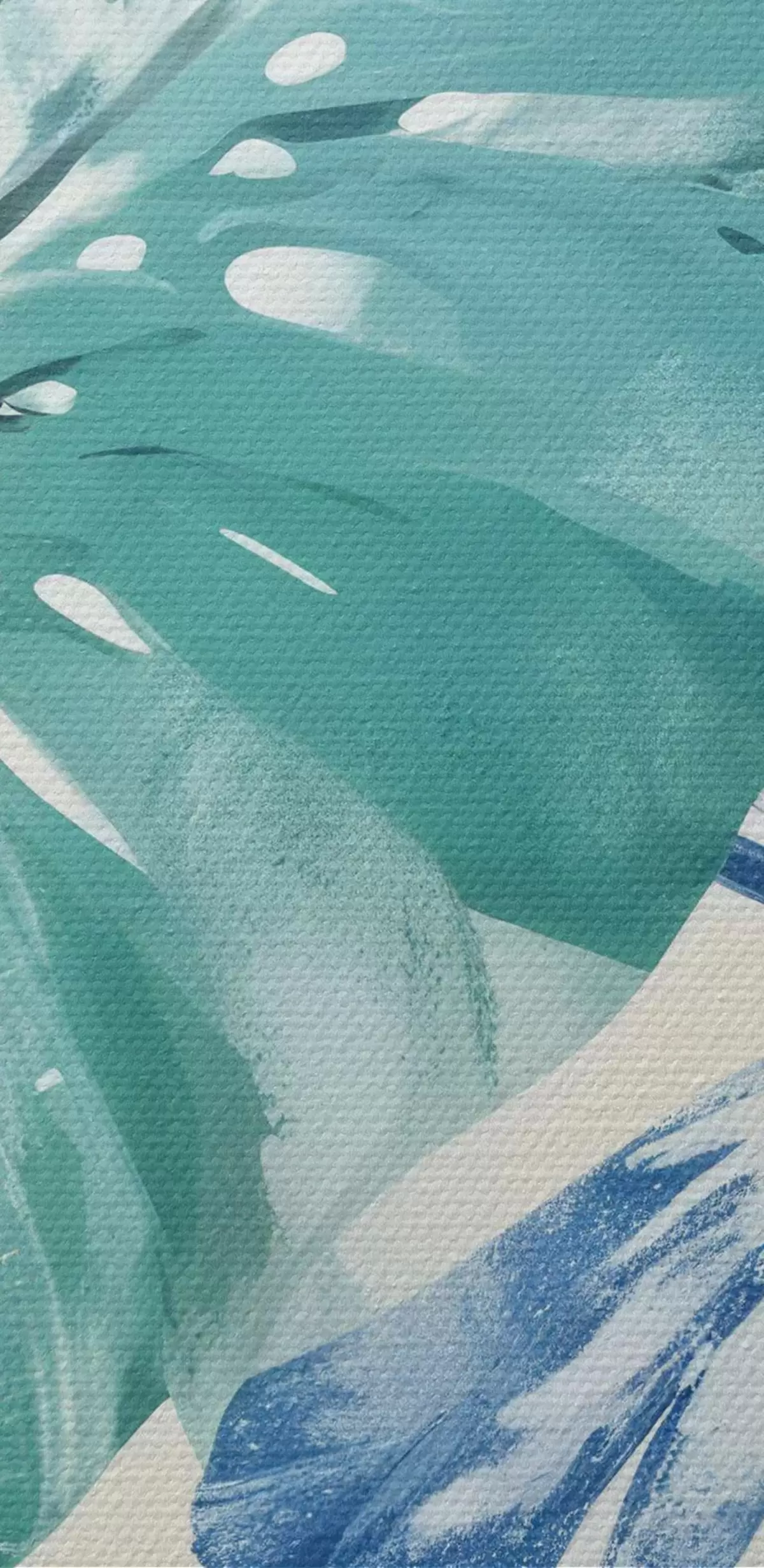 Obrázok Tlač s veľkými tropickými listami v odtieňoch modrej a zelenej na svetlom pozadí Nr r40608