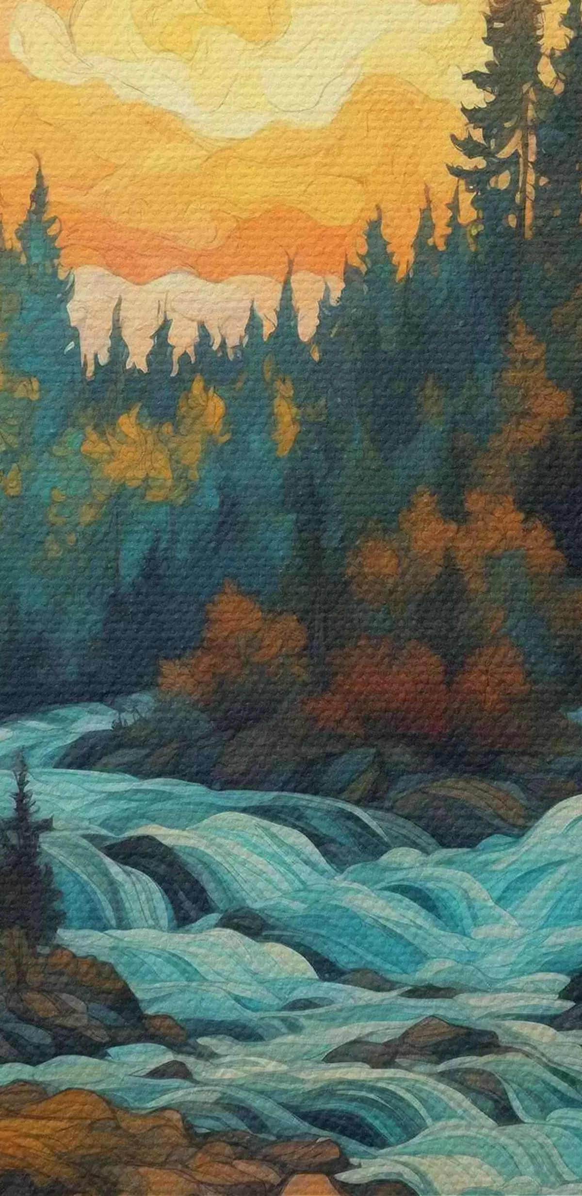 Obrázok Smrekový les a pestrofarebná obloha Nr r40639