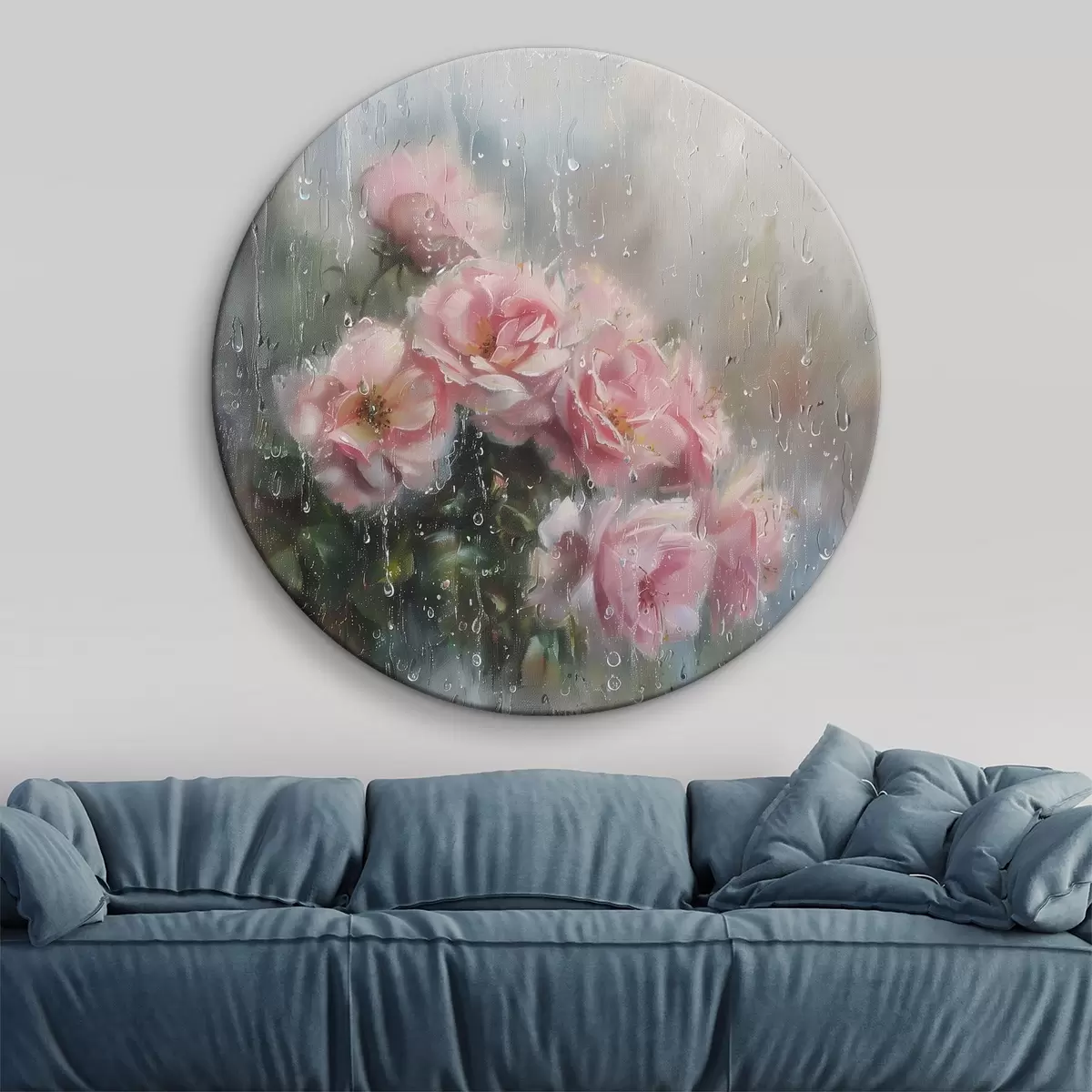 Obrázok Kytica ružových ruží za oknom v daždivom počasí Nr r40656