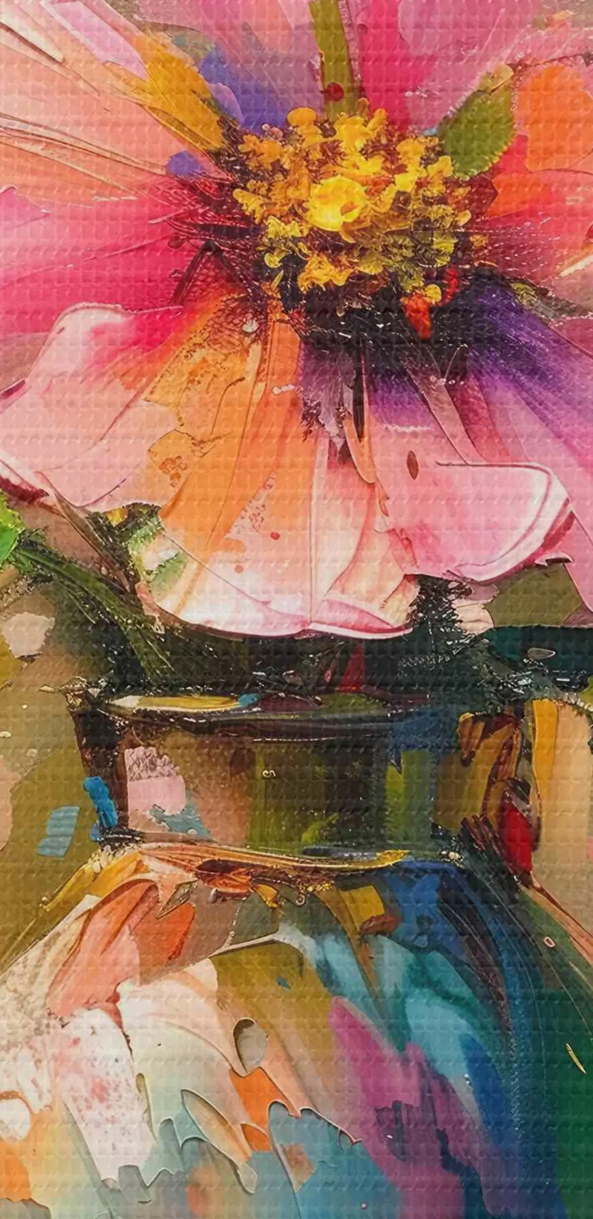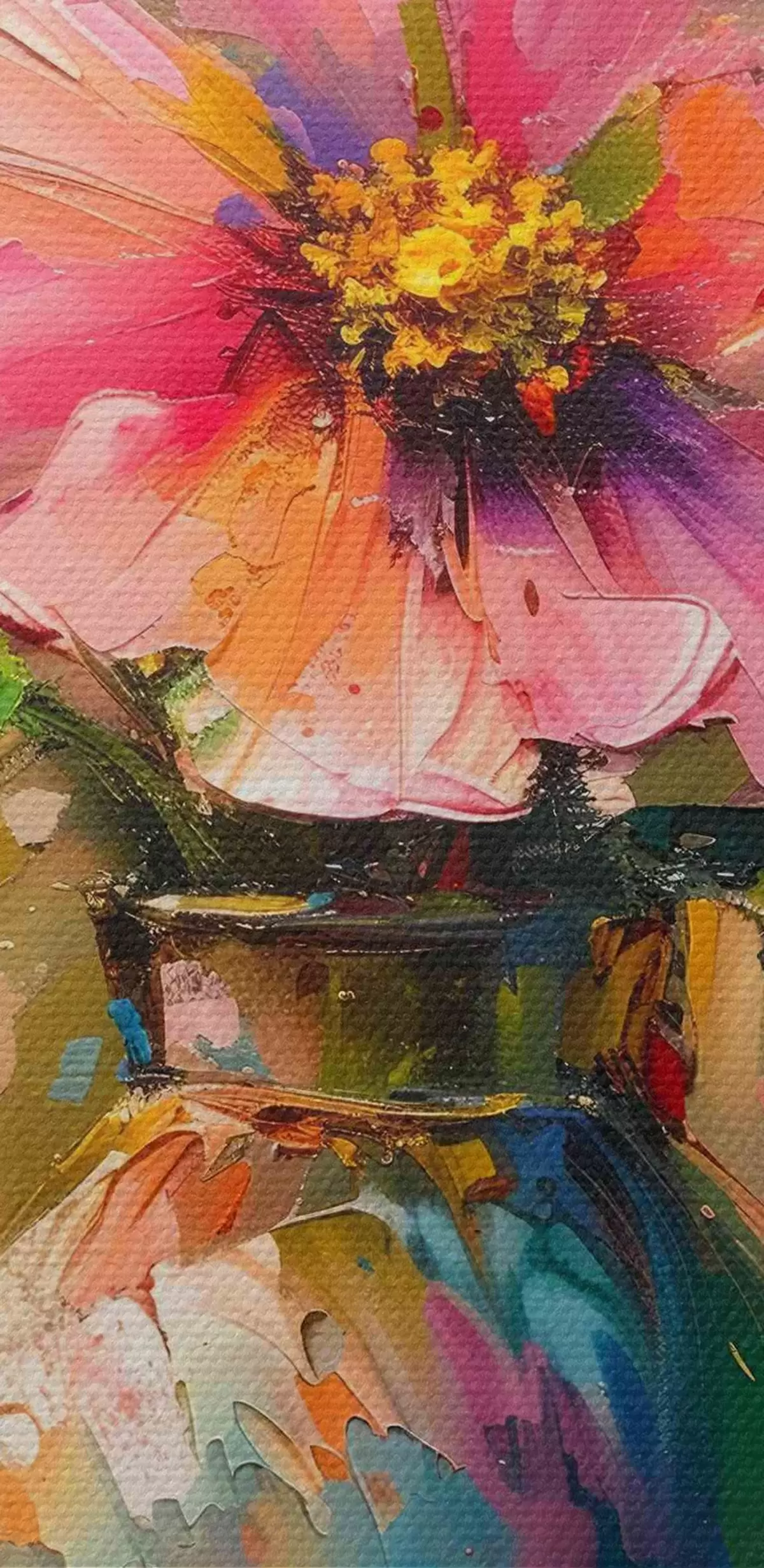 Obrázok Farebný kvet vo váze s veľkými ťahmi olejovej farby Nr r40664