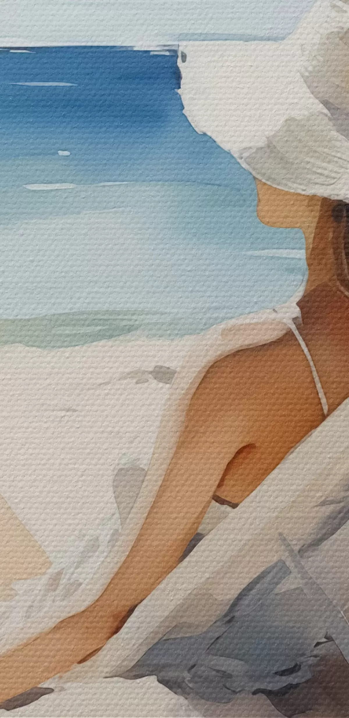 Obrázok Dievča relaxuje na pláži pri mori akvarel Nr r40679