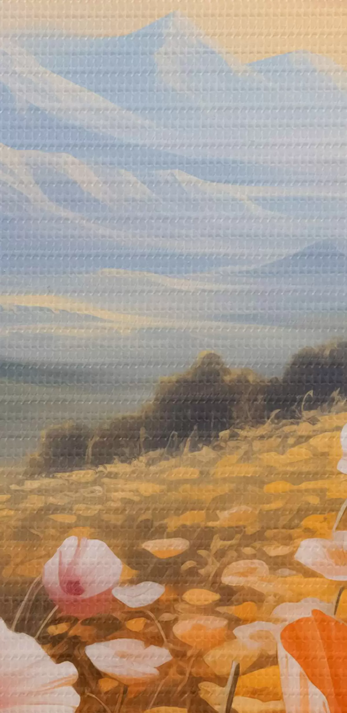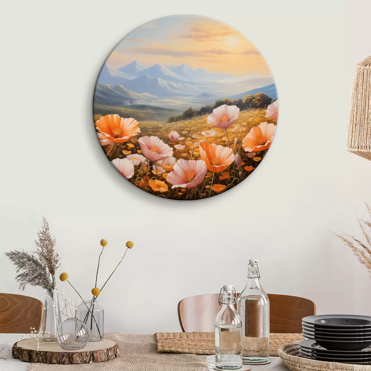 Obrázok Pole makov na úsvite s horami v pozadí Nr r40730