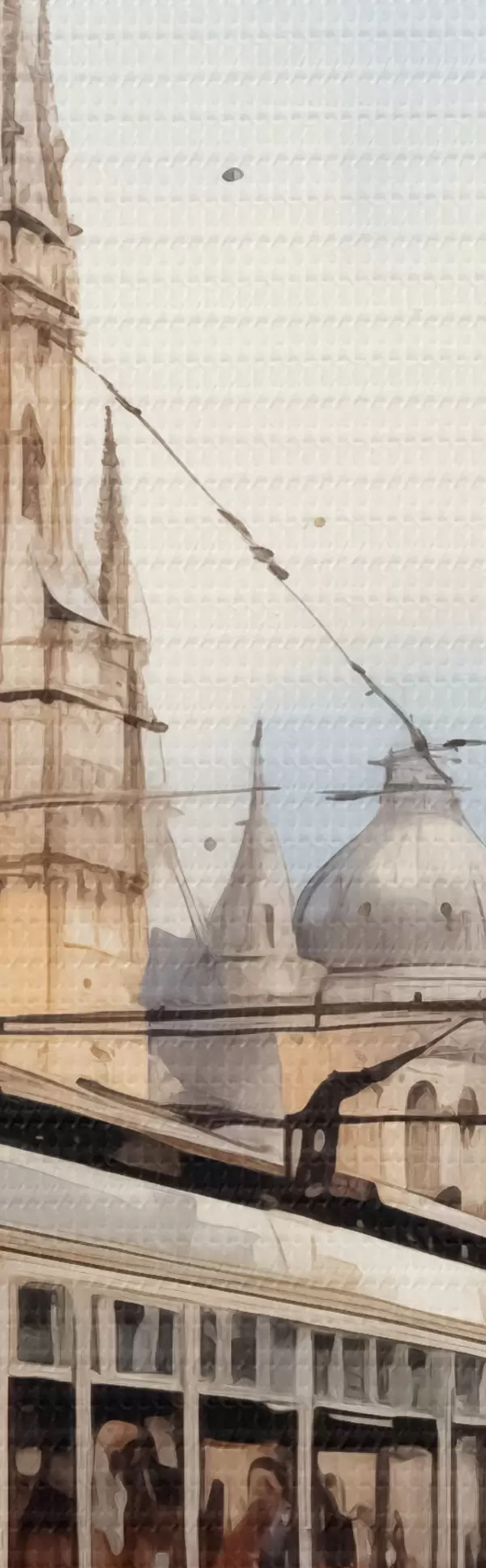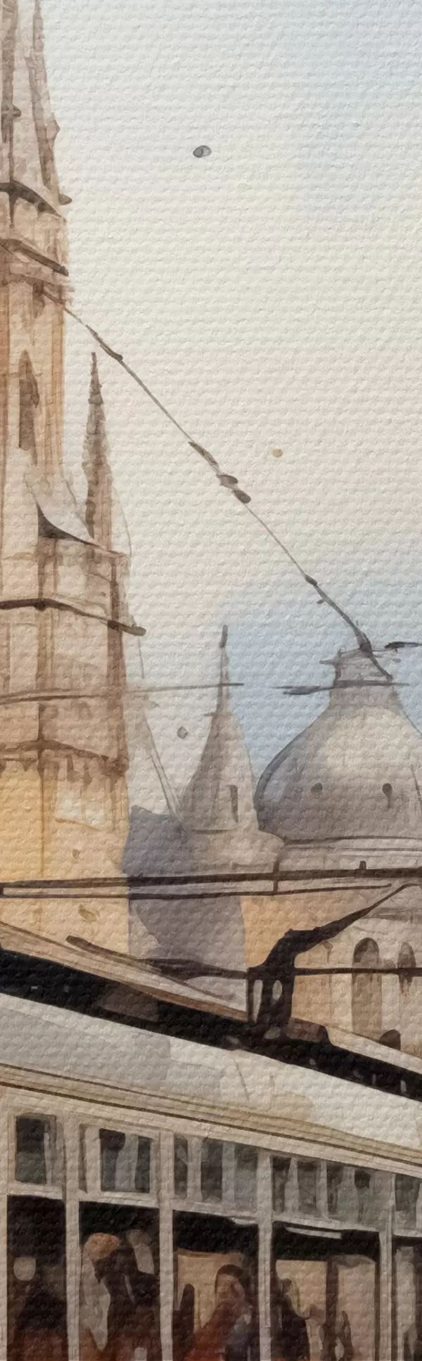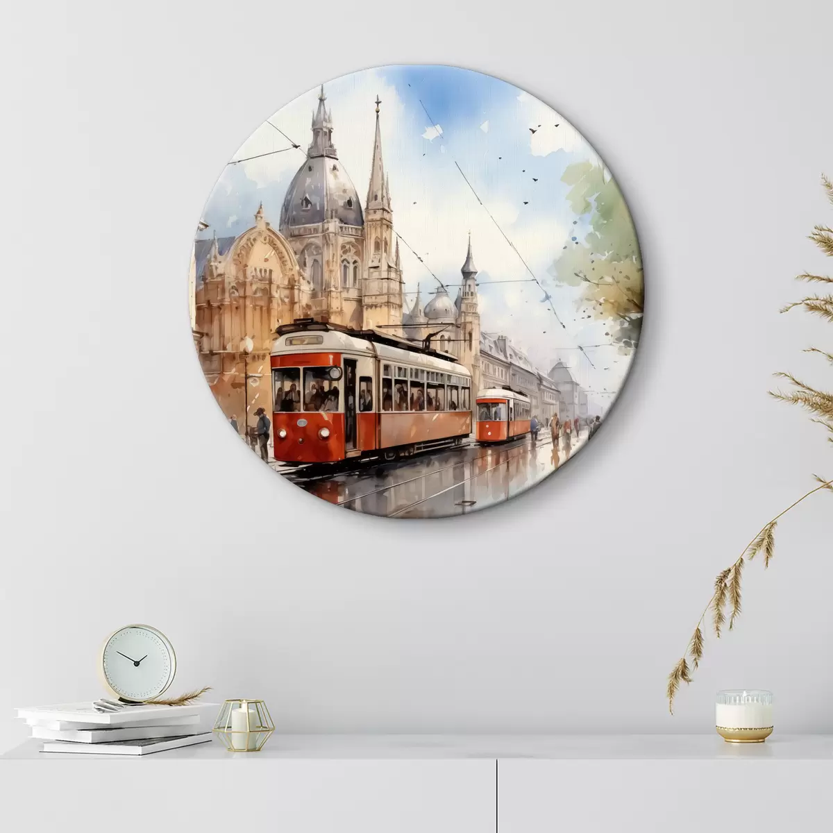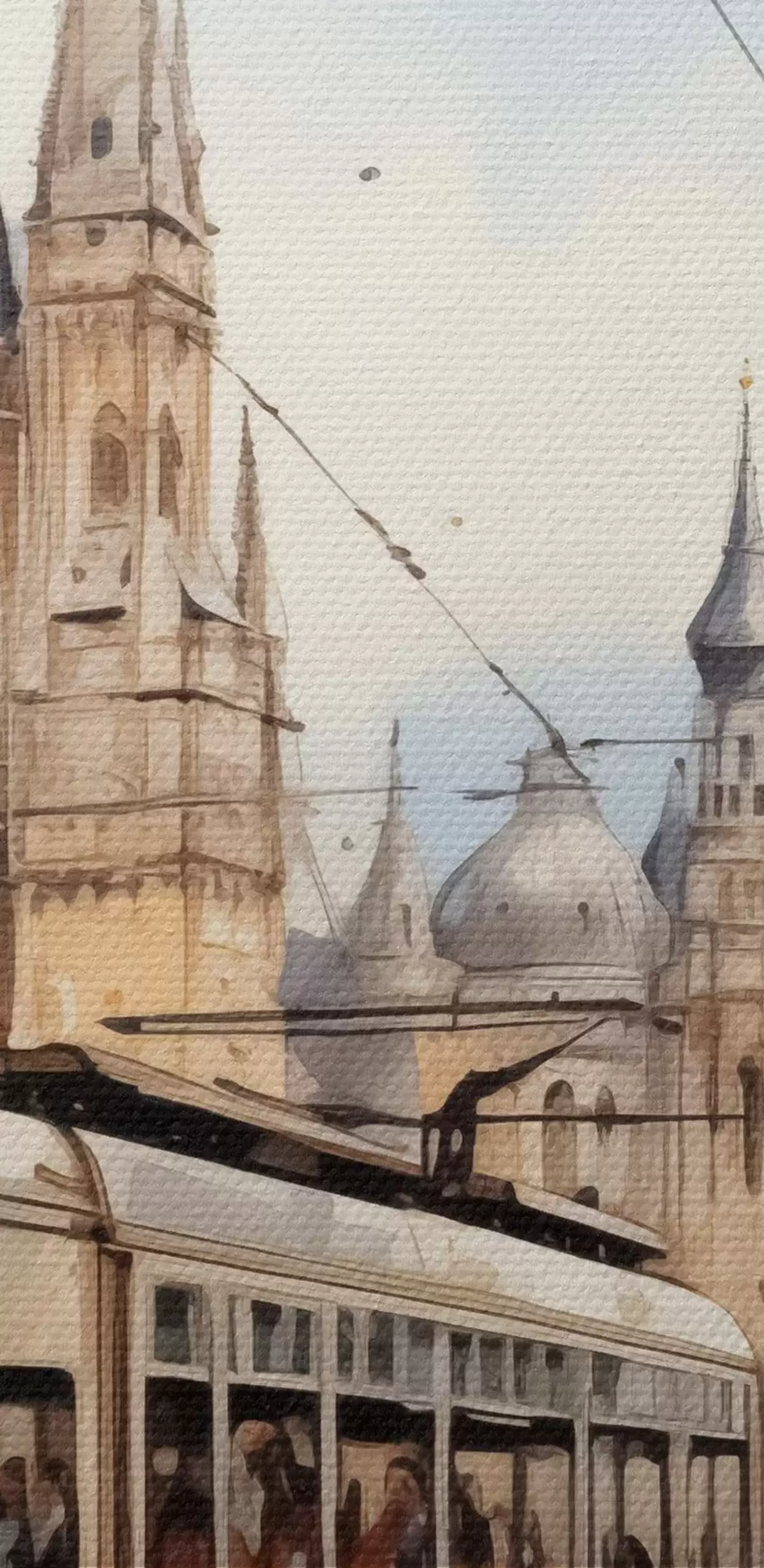 Obrázok Červená električka na viedenskej ulici akvarel Nr r40732