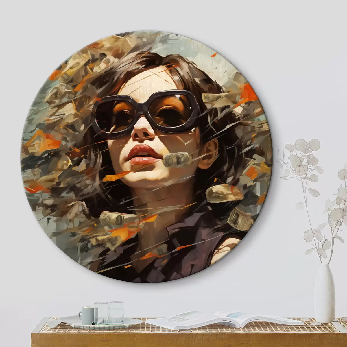 Obrázok Dievča v slnečných okuliaroch obklopené abstraktnými peniazmi Nr r40750