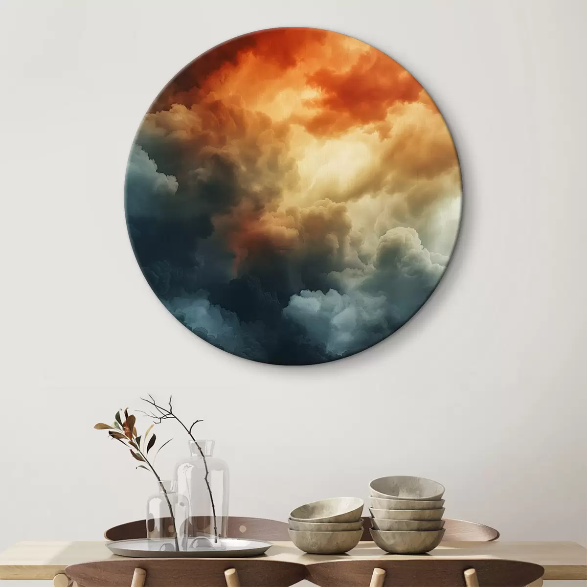 Obrázok Mraky, tmavomodrá, oranžová, starožitná Nr r40784