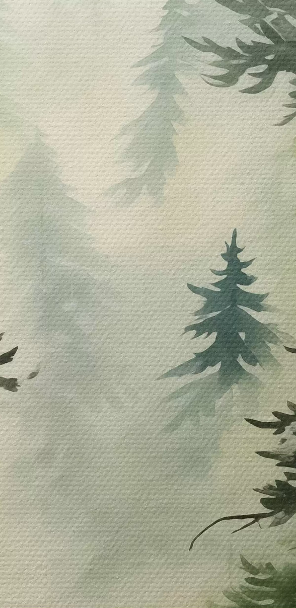Obrázok Jedle v lese na pozadí hôr, akvarel, zelená Nr r40889