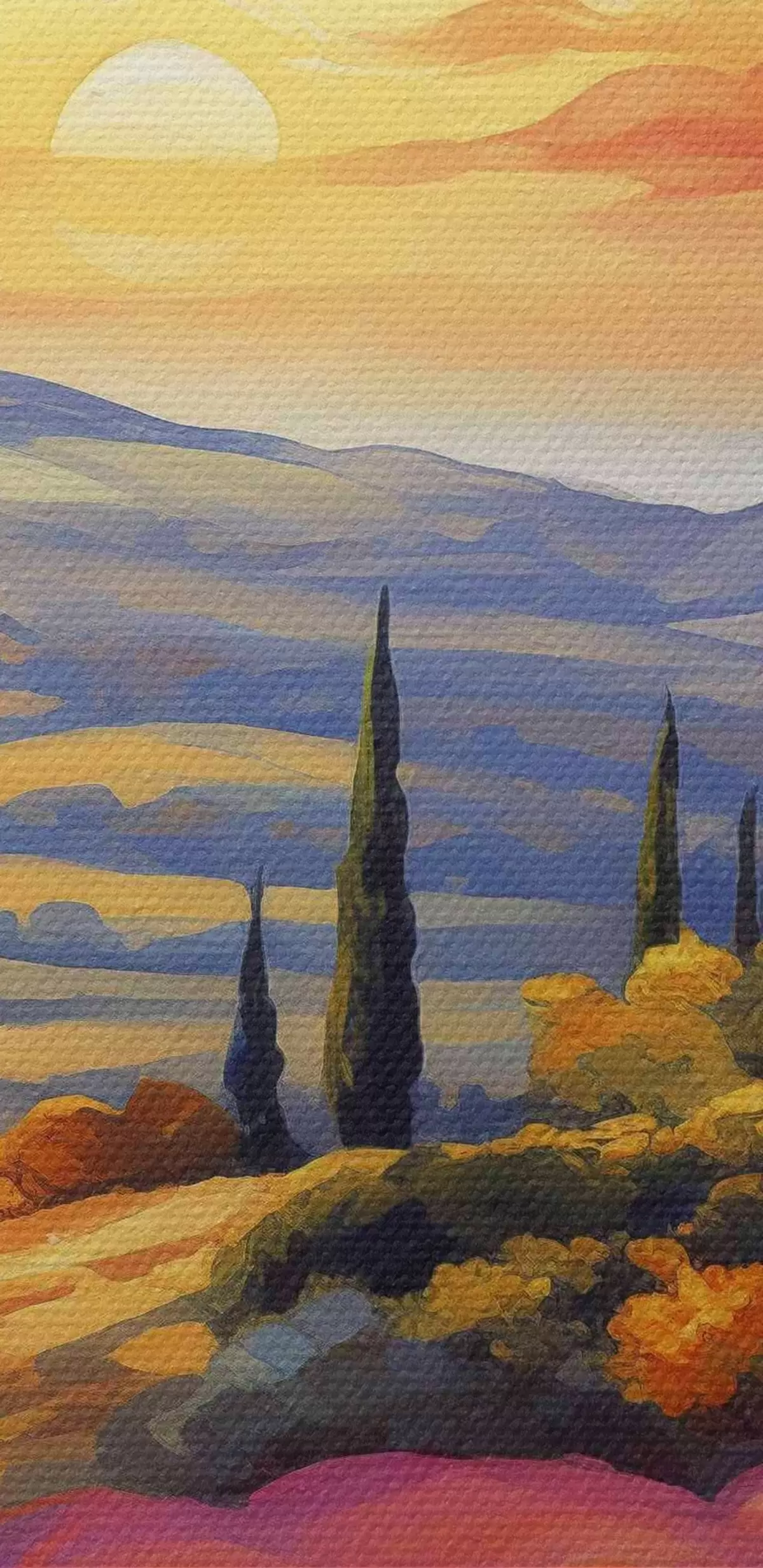 Obrázok Západ slnka v Toskánsku, levanduľové polia, krásna krajina, akvarel Nr r40942