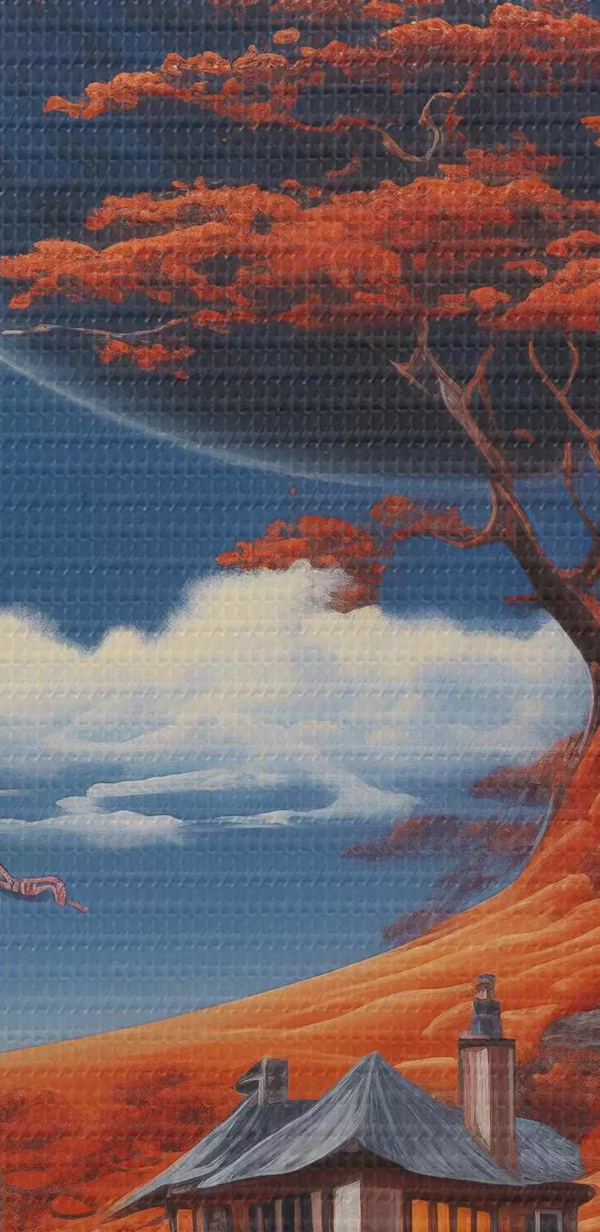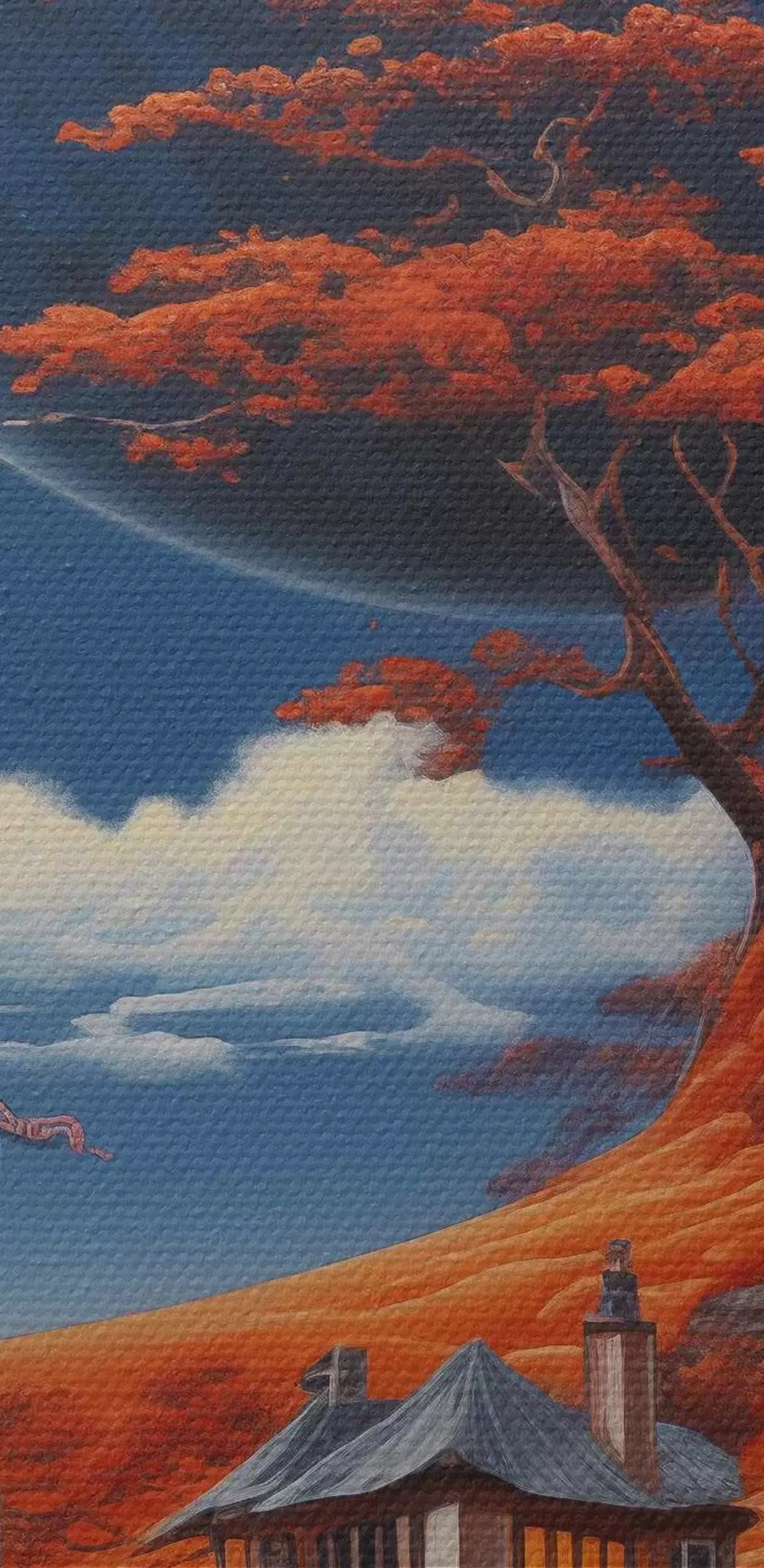 Obrázok Vesmírna ilustrácia, planéty, modrá obloha, dom na kopci, stromy Nr r40946