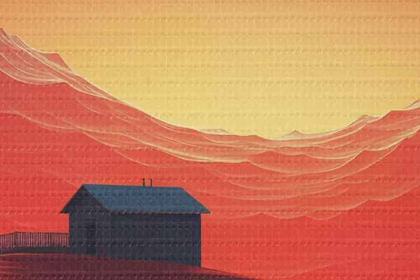 Obrázok Noc v púšti, mesiac, červený piesok, futurizmus, malý dom Nr r40950
