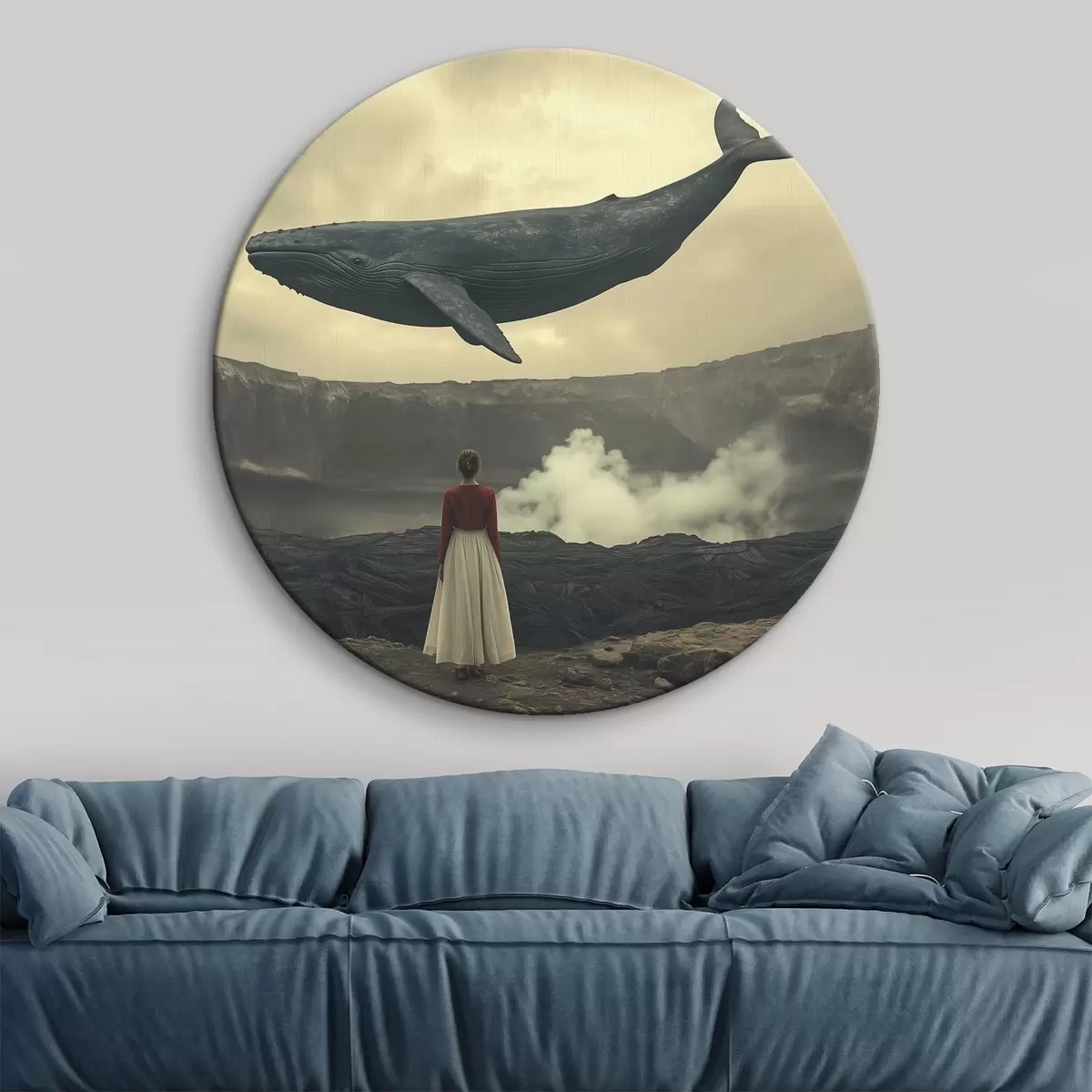 Obrázok Dievča na láve s veľkou lietajúcou veľrybou na oblohe Nr r40986