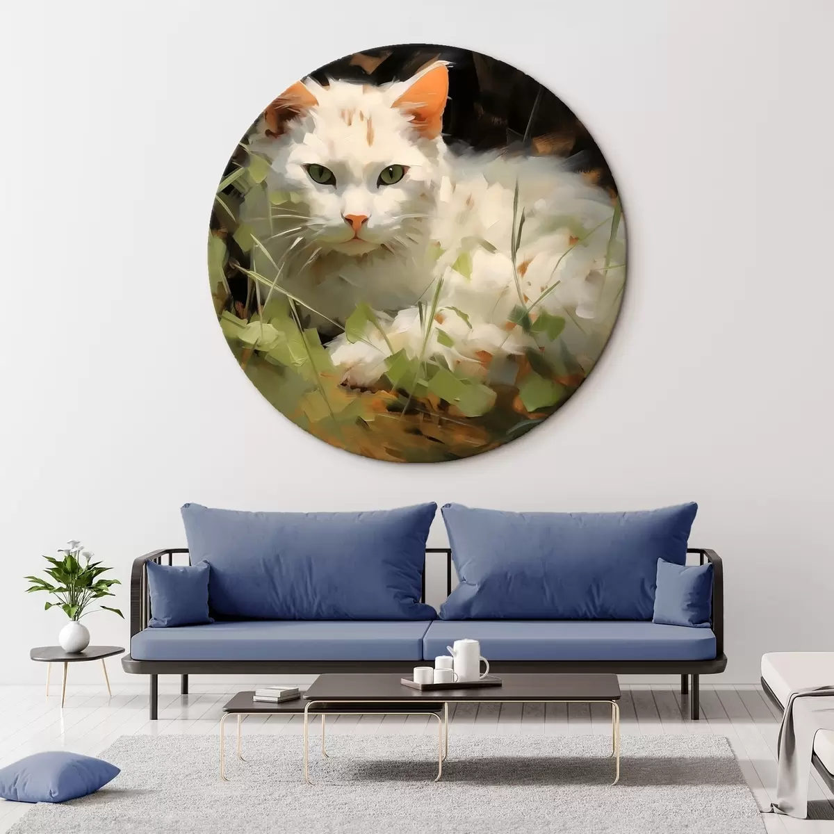 Obrázok Biela mačka ležiaca v tráve, imitácia ťahov štetcom Nr r41017