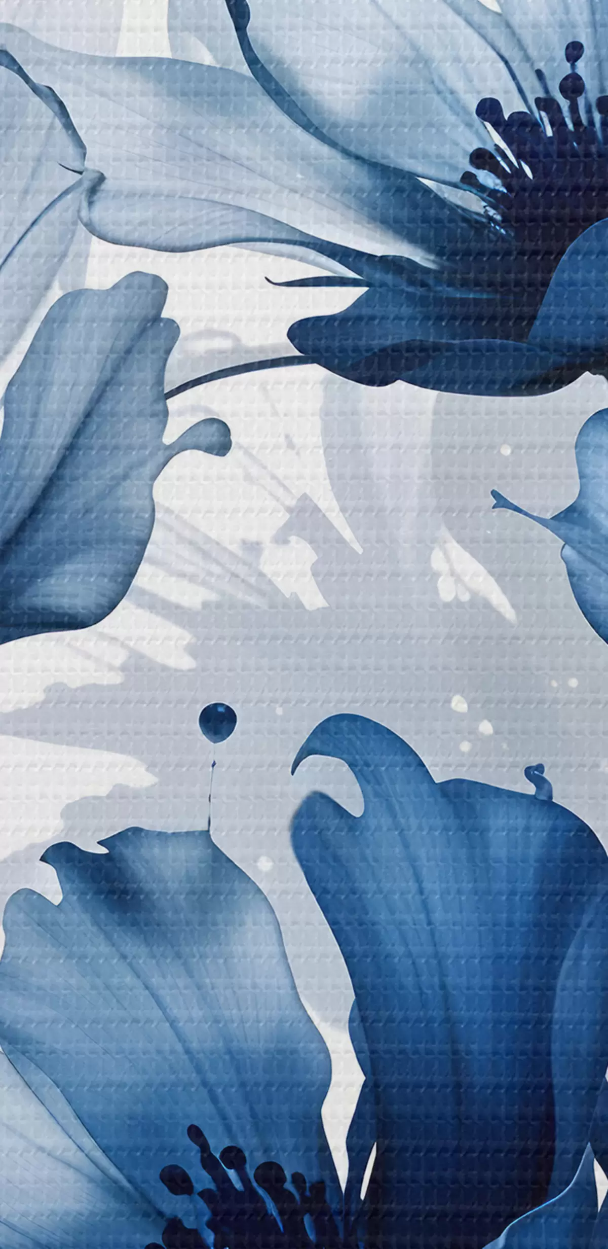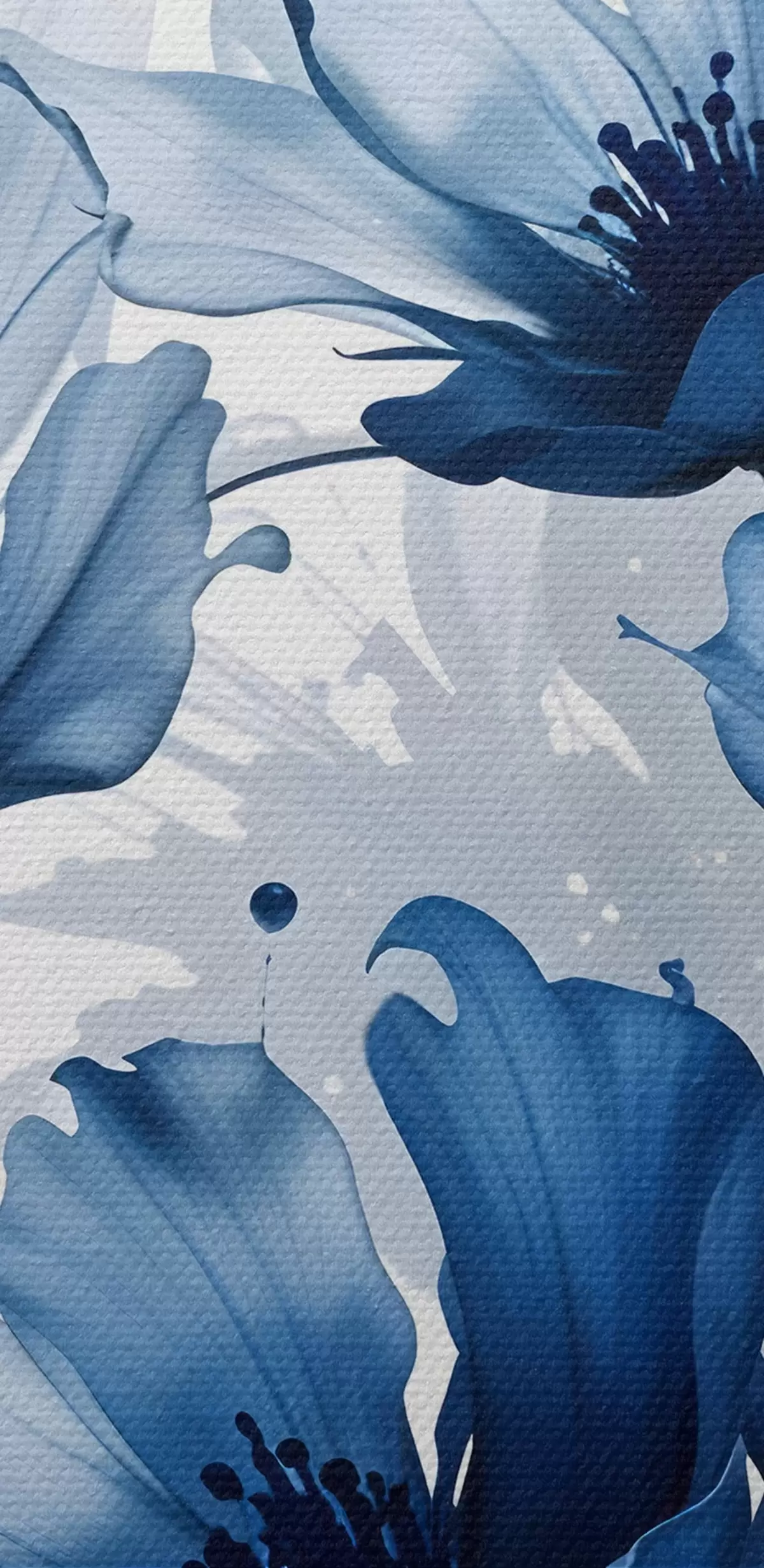 Obrázok Abstraktné veľké modré a biele kvety s jemnými rozmazanými okvetnými lístkami na bielom pozadí Nr r41082
