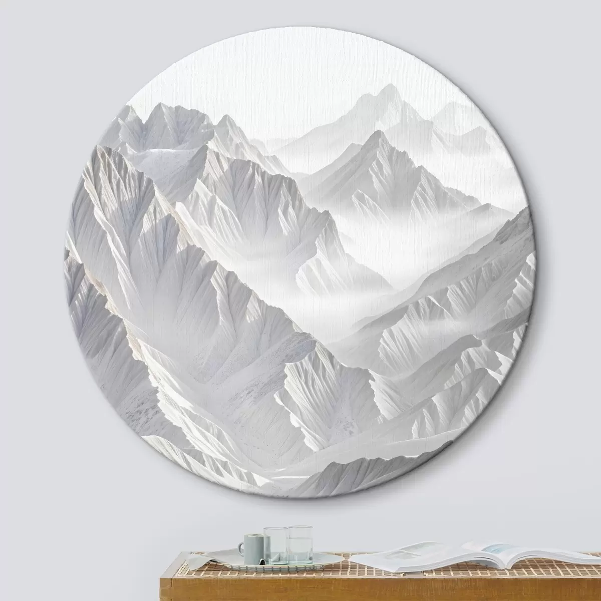 Obrázok Zasnežené minimalistické vrcholy hôr v hmlistej, hmlistej krajine Nr r41083