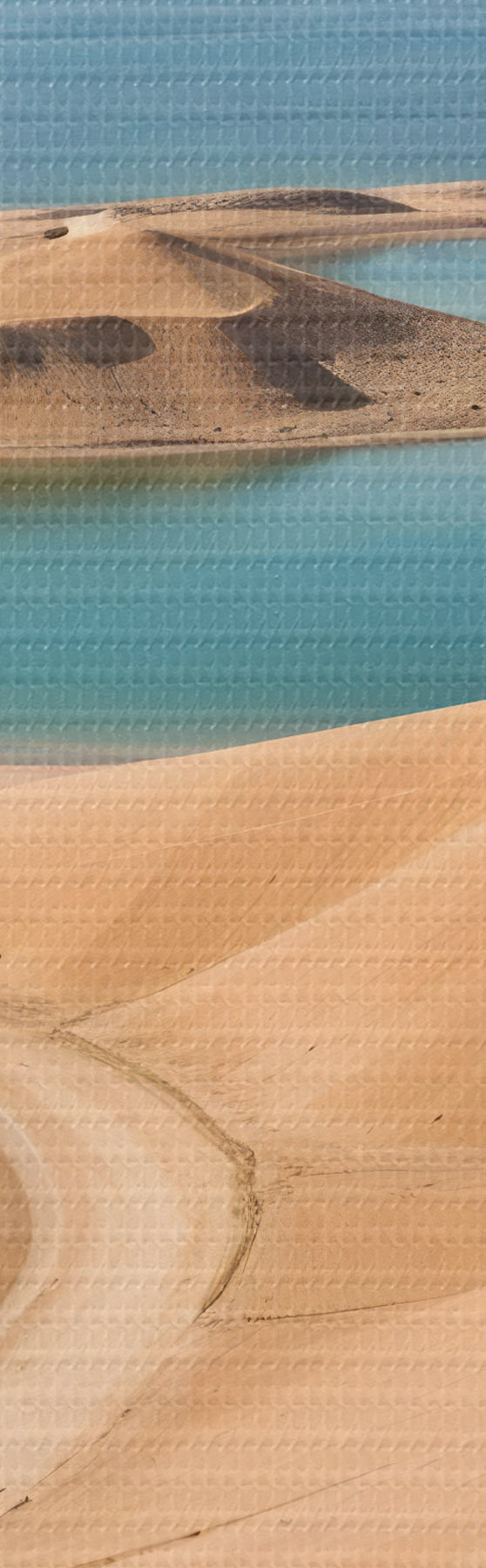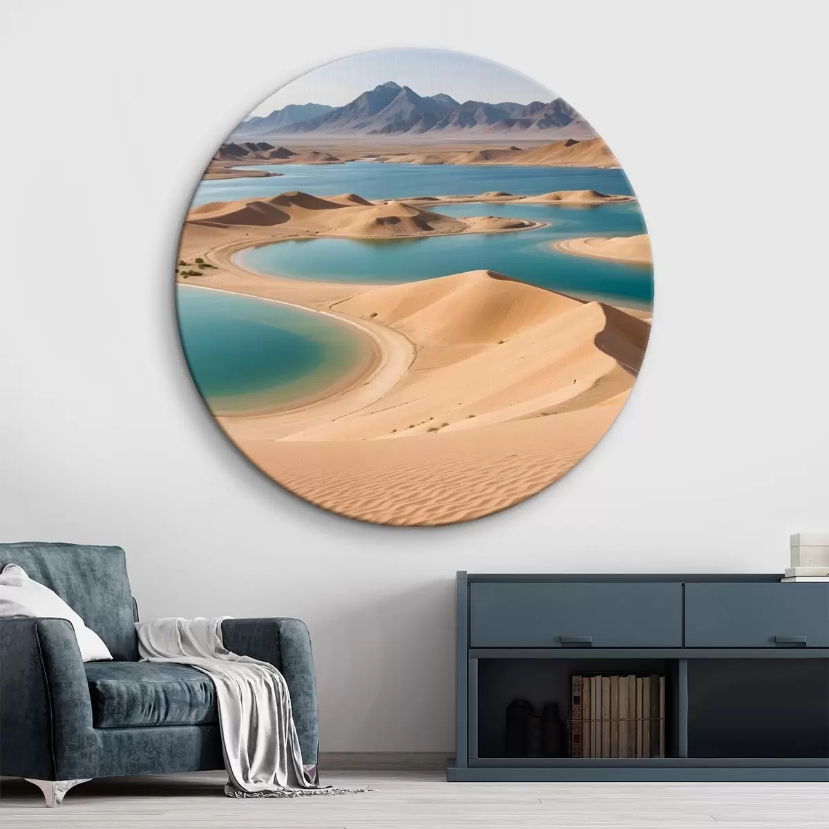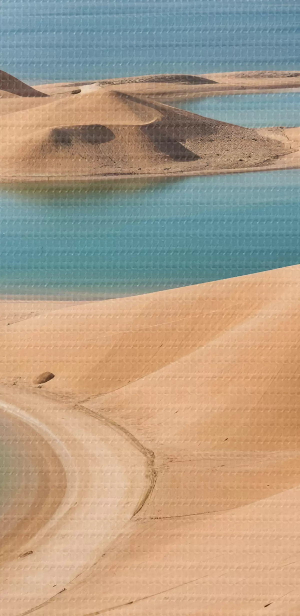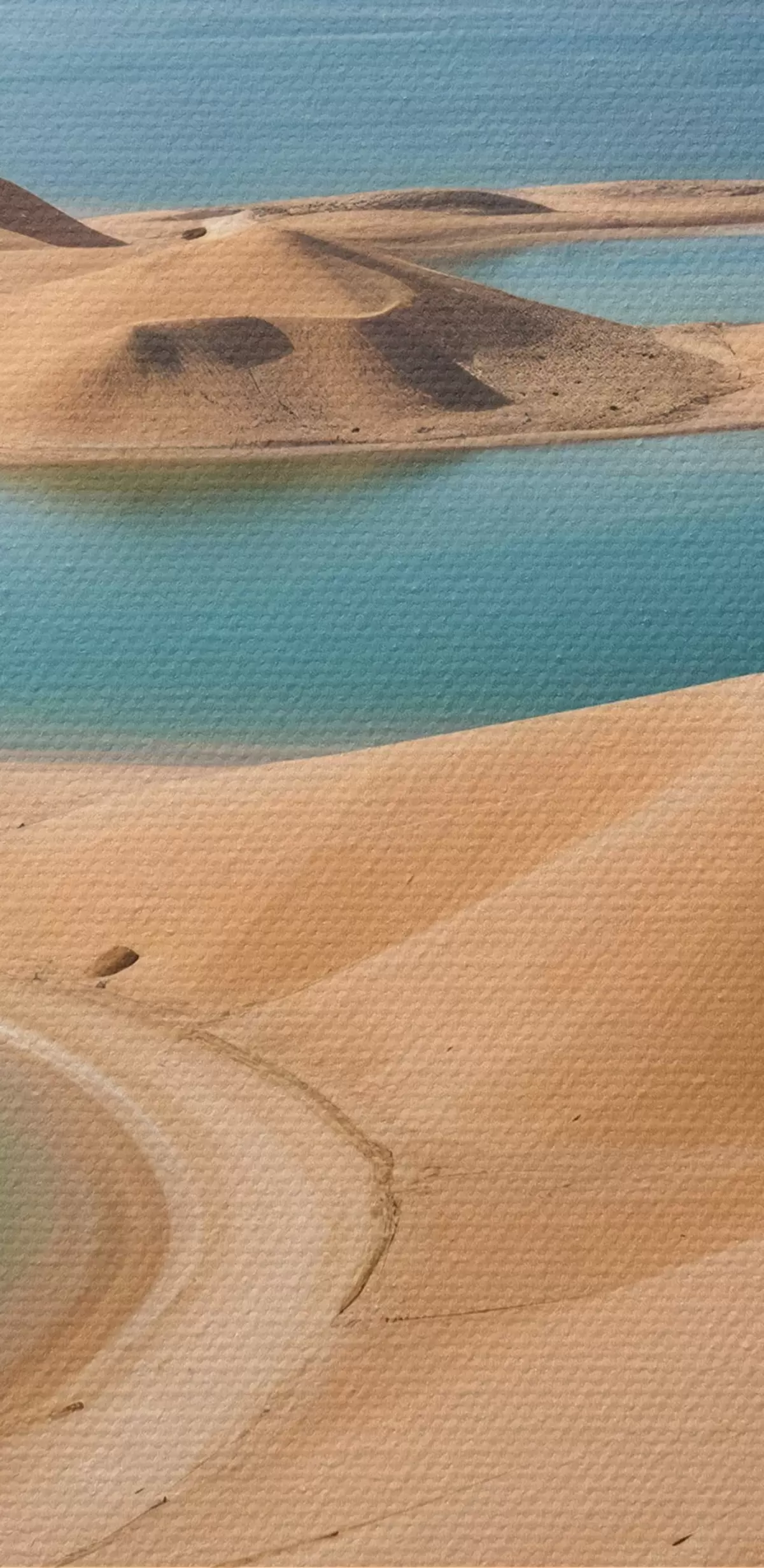 Obrázok Rozsiahla púštna krajina s dunami a tyrkysovými jazerami, obklopená drsnými horami Nr r41087