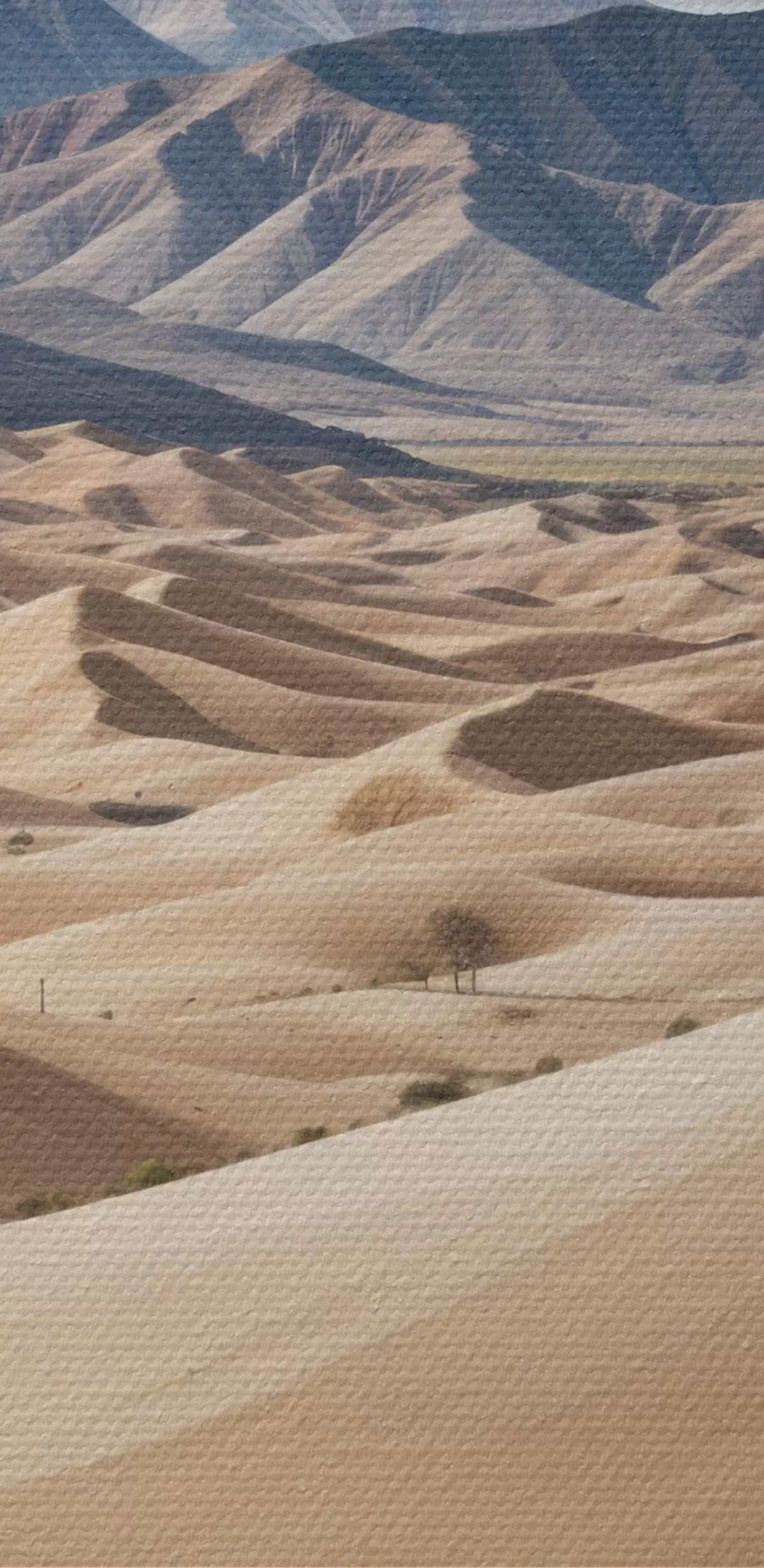 Obrázok Rozsiahla púštna krajina s dunami, drsnými horami v diaľke a dramatickou zamračenou oblohou Nr r41089