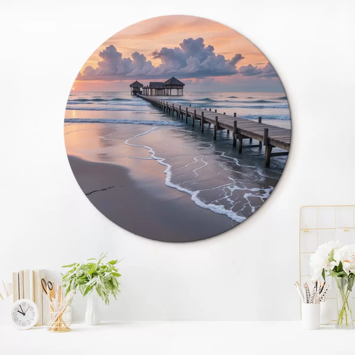 Obrázok Drevené mólo s výhľadom na pokojný oceán pri západe slnka s farebnými mrakmi Nr r41091