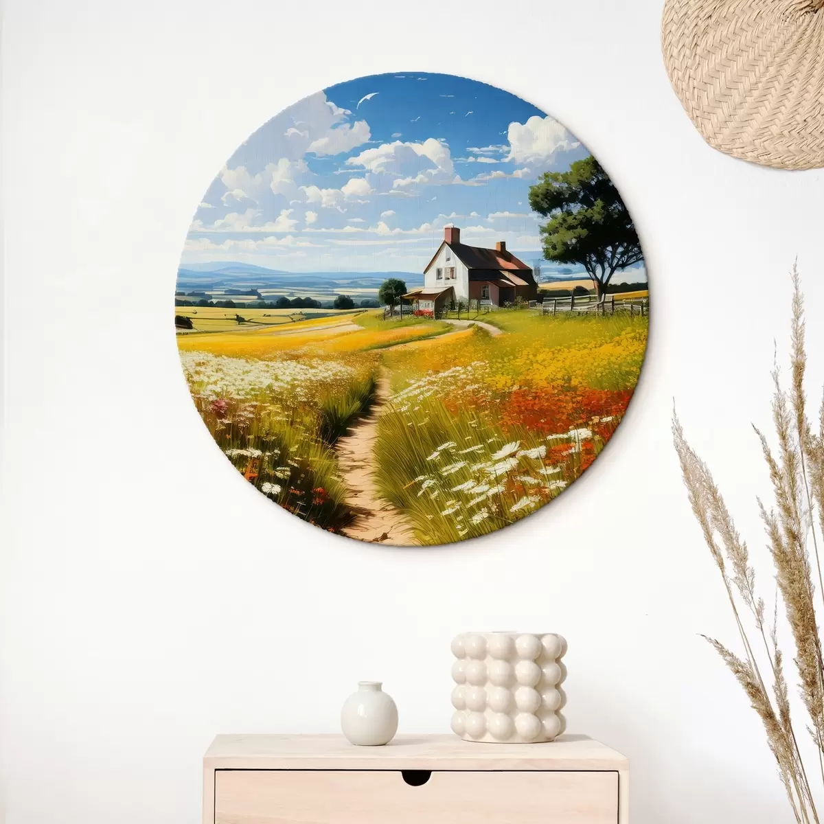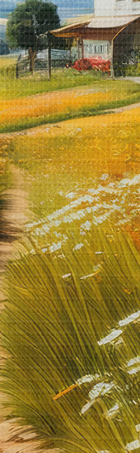 Obrázok cesta v kvitnúcom poli a dom Nr r41109