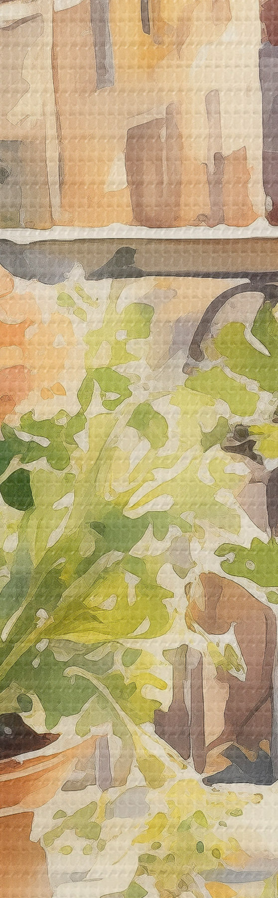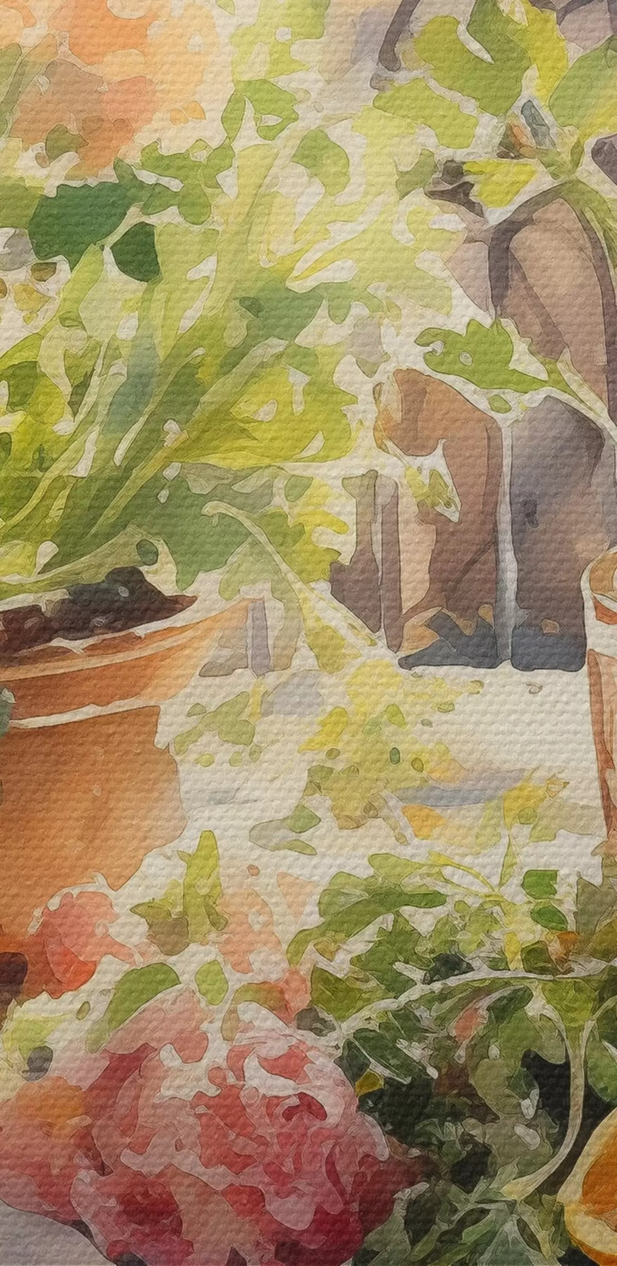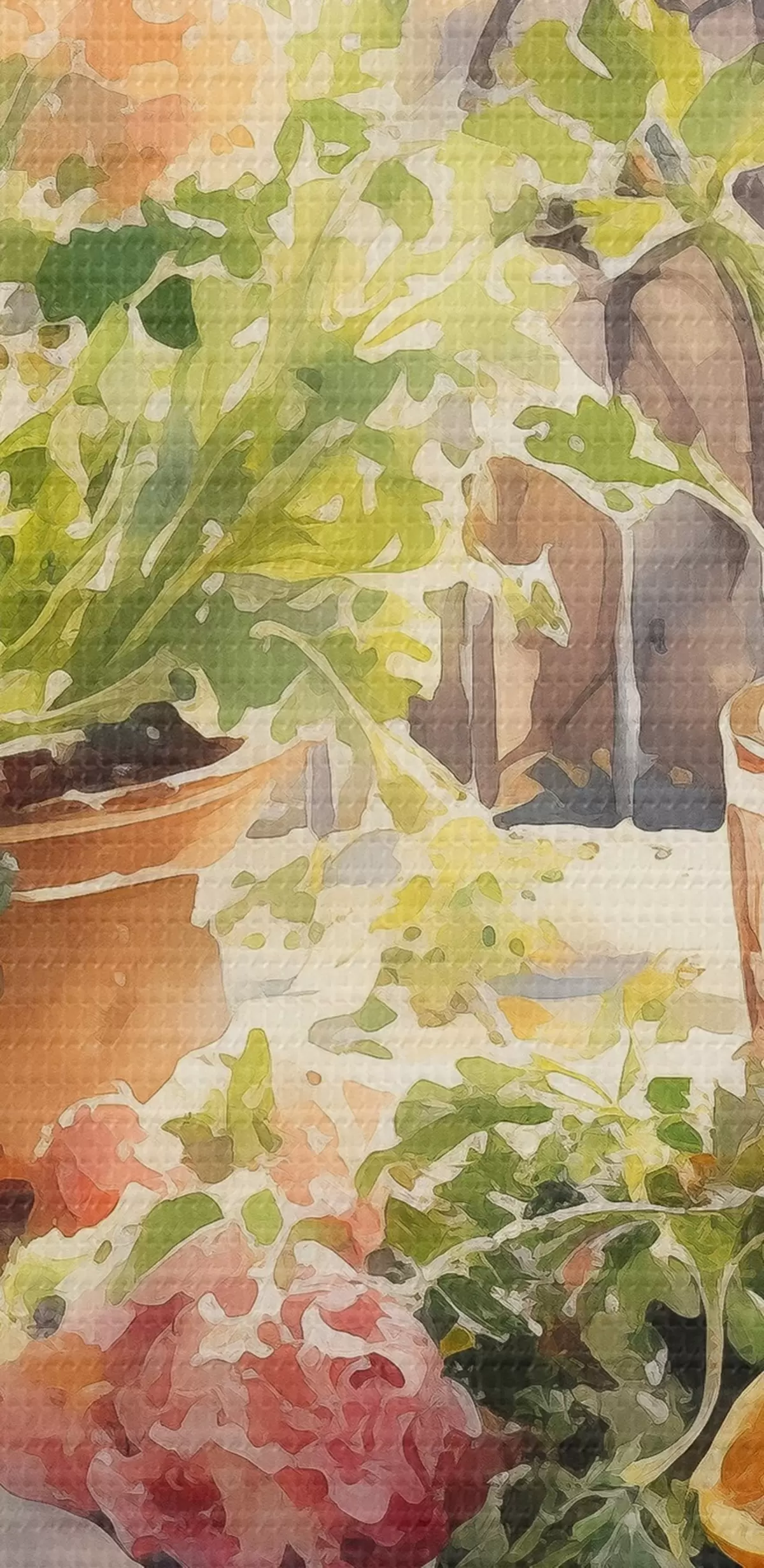 Obrázok Akvarelová večera, pohľad na mesto, kvety, príroda, zelený šalát Nr r41166