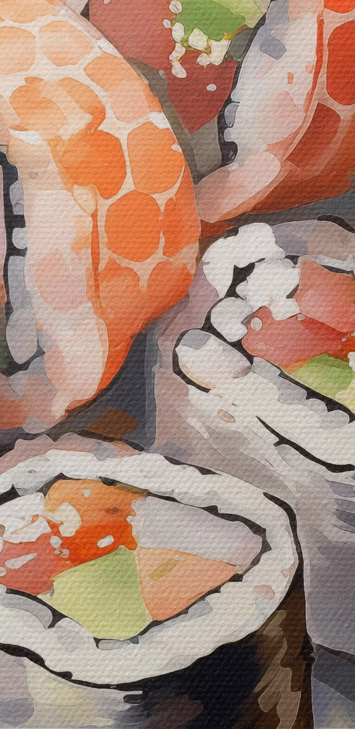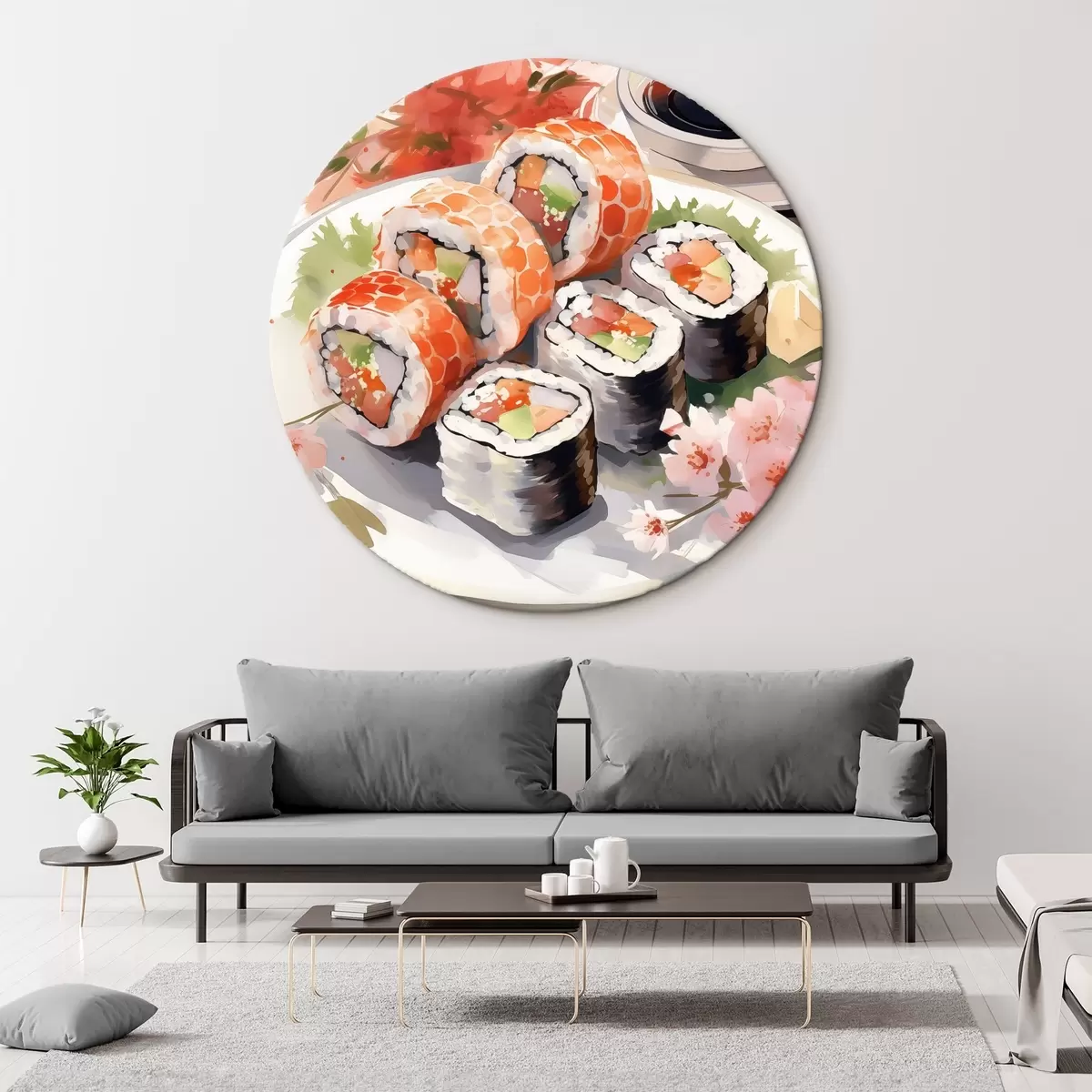 Obrázok Sushi na tanieri, akvarel, kvetinové, japonské Nr r41179