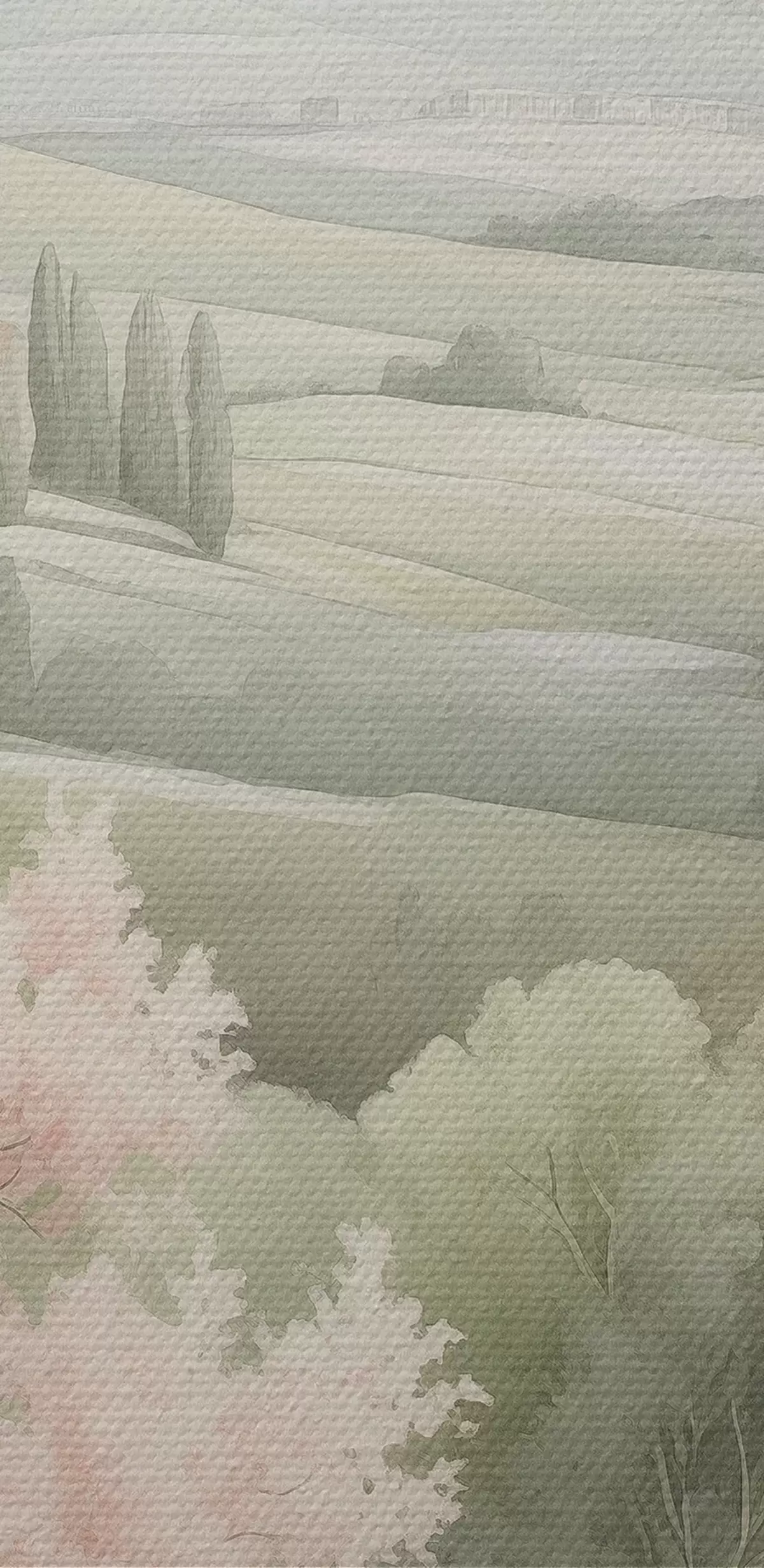 Obrázok Akvarel príroda, jemné farby, ruže, stromy, zelené kopce Nr r41223