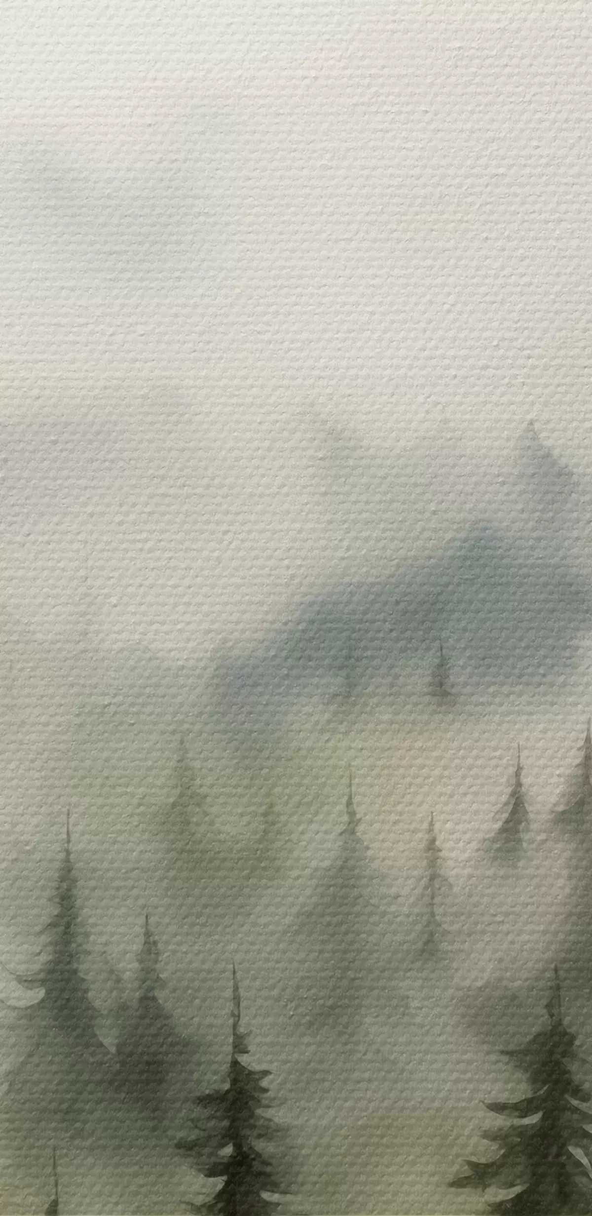Obrázok Zelený les na pozadí hôr a hmly akvarel Nr r41241