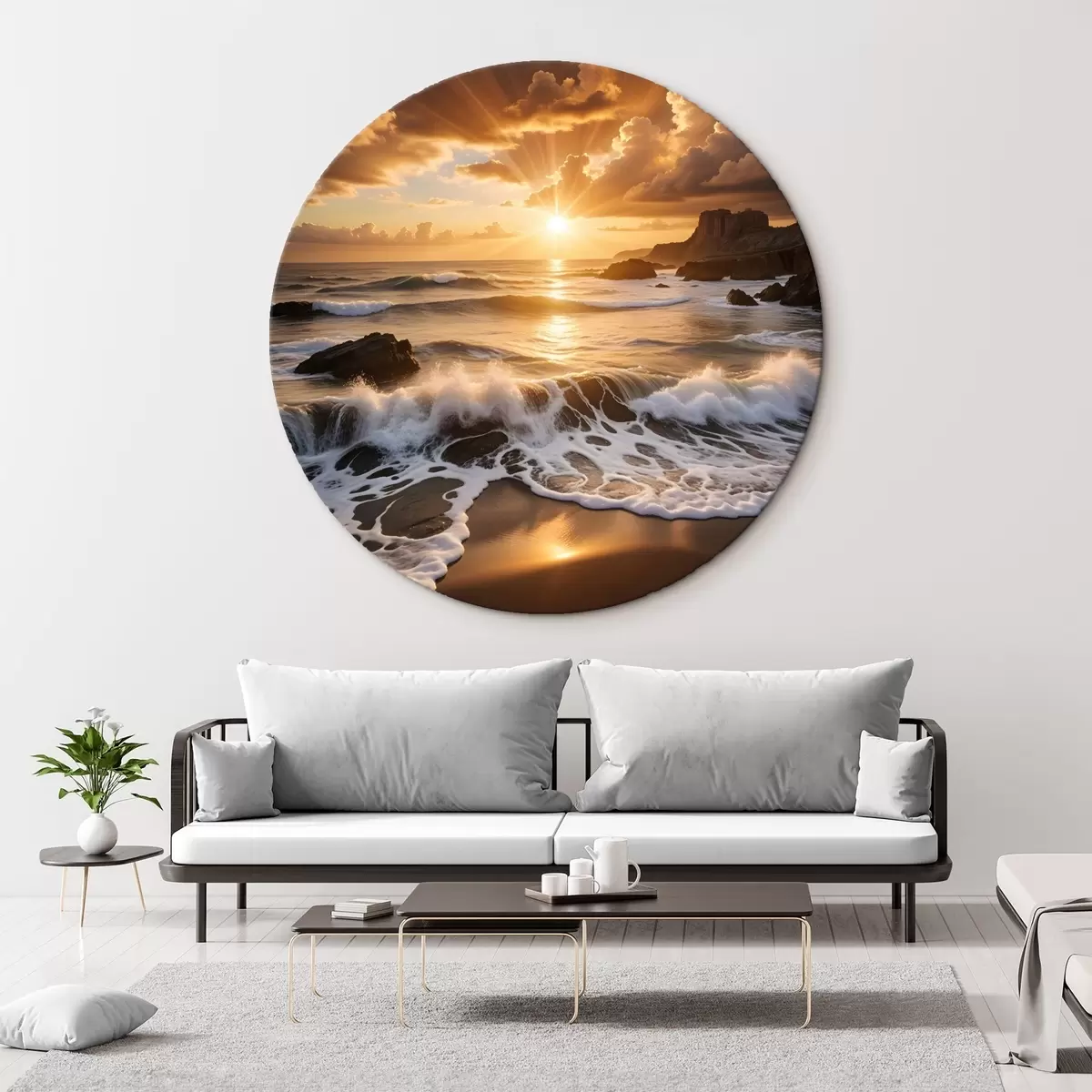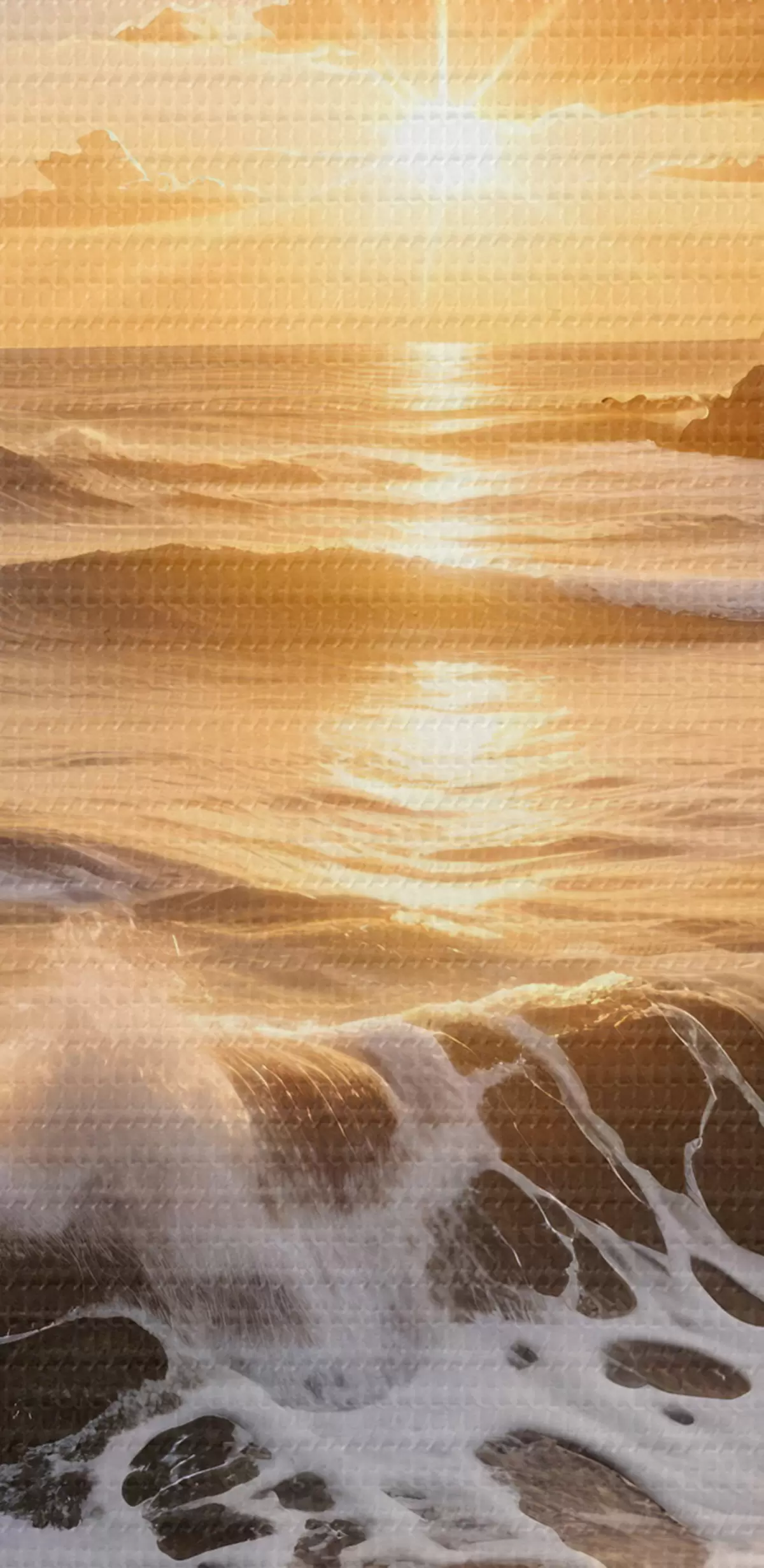 Obrázok Dramatický západ slnka nad skalnatým pobrežím s rozbíjaním vĺn a dramatickými mrakmi na oblohe Nr r41245