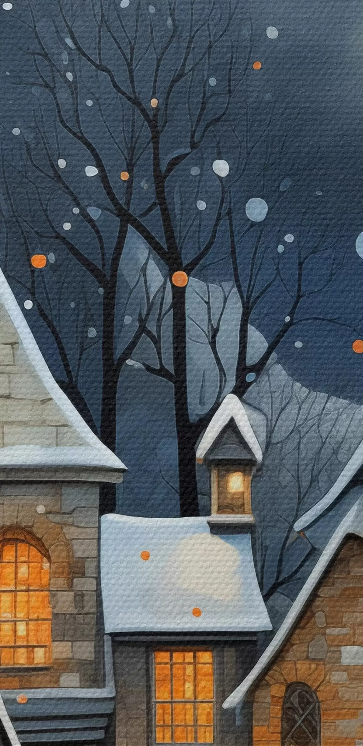 Obrázok Domy na snehu na pozadí hviezdnej nočnej oblohy Nr r41276