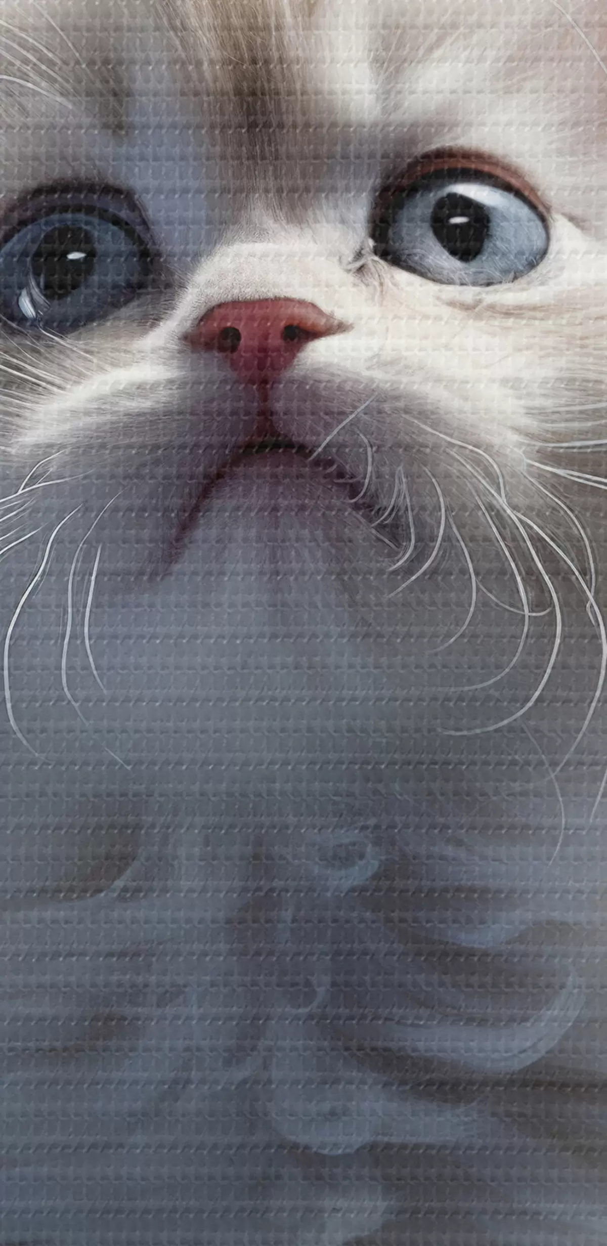 Obrázok Na oblohe sedí biele huňaté mačiatko Nr r41279