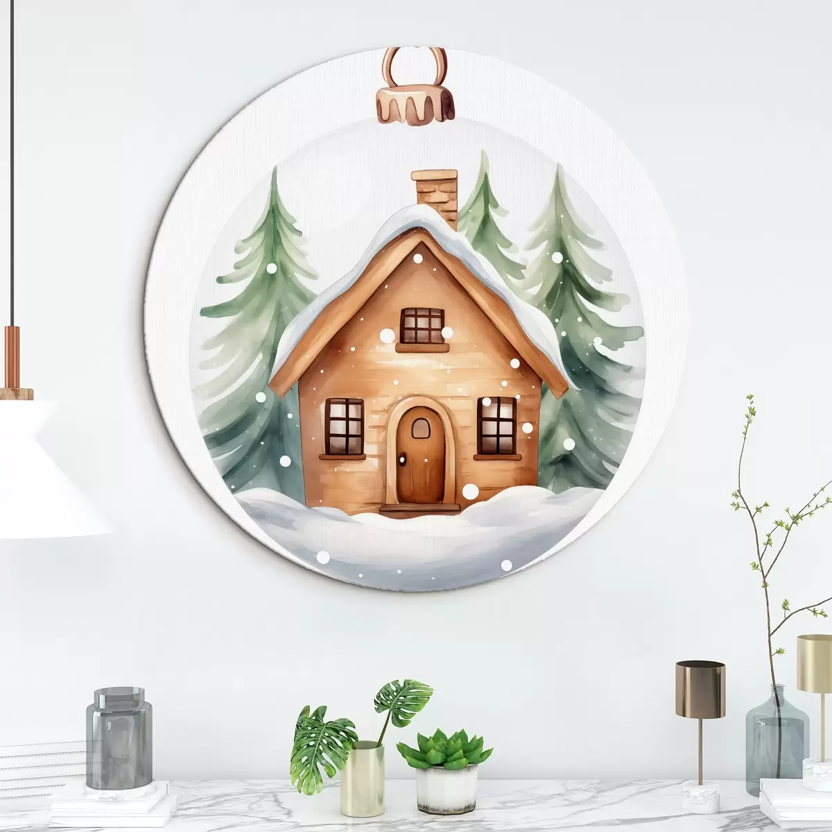 Obrázok Krištáľová guľa s akvarelovým domčekom na snehu, borovice Nr r41362